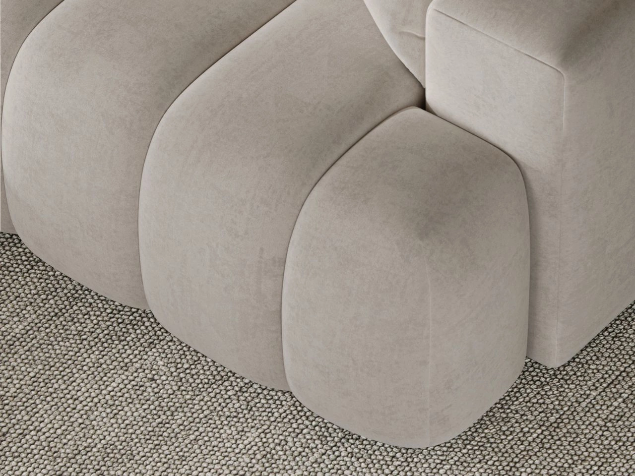 Uniwersalny charakter narożnika sprawia, że świetnie komponuje się w różnych aranżacjach wnętrz. Dzięki wolnostojącej formie prezentuje się atrakcyjnie z każdej strony, oferując swobodę ustawienia w dowolnym miejscu salonu.