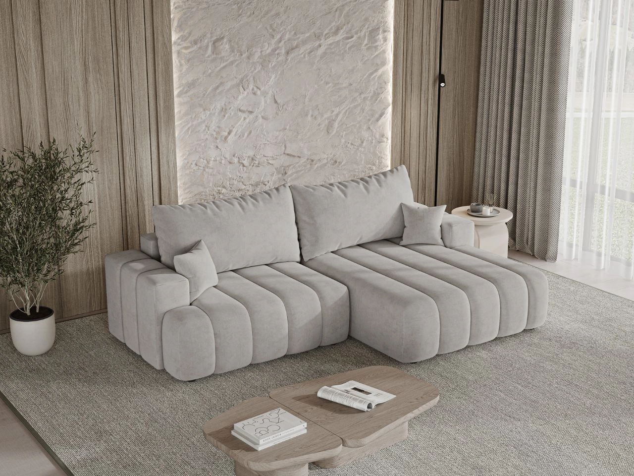 Narożnik L Prawy z funkcją spania i pojemnikiem Caleo Jasnoszary