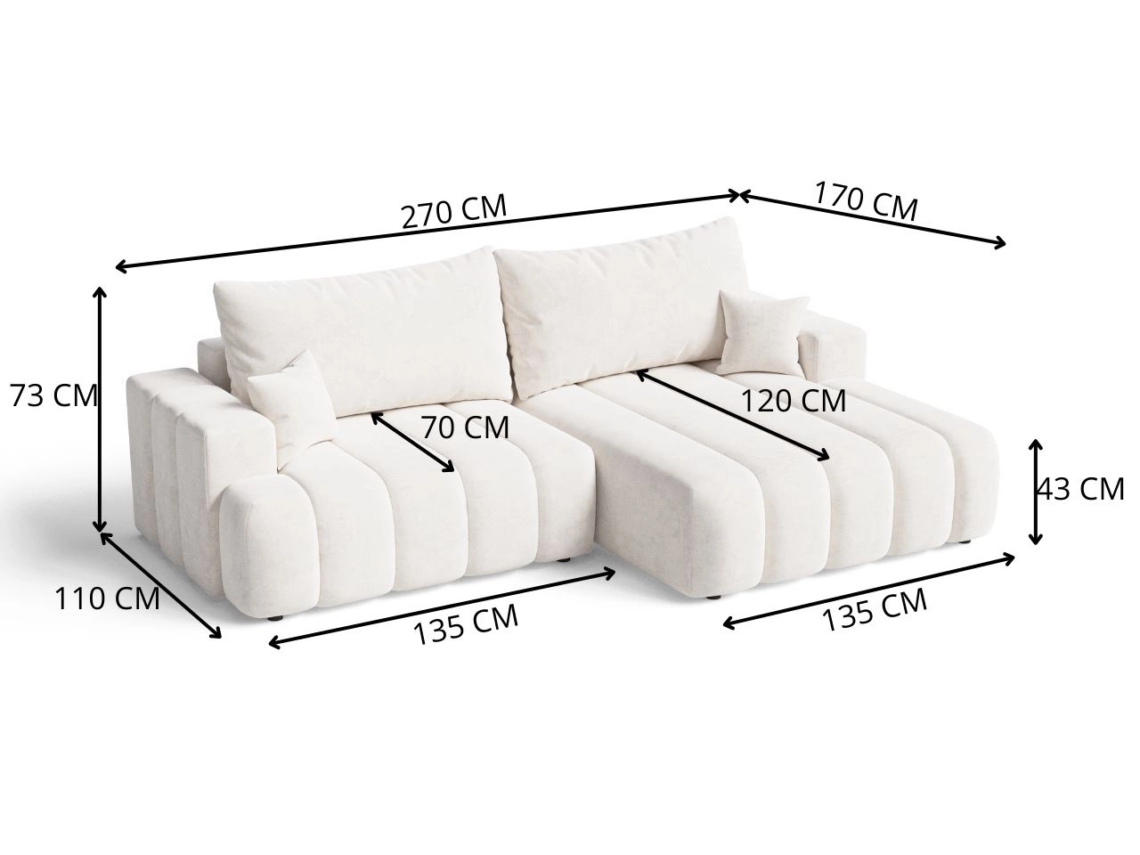 Model w kształcie litery L oferuje przestronne siedzisko i komfortową otomanę, które zapewniają idealne warunki do relaksu. Wysokiej jakości wypełnienie oraz sprężyny faliste gwarantują odpowiednią sprężystość, wygodę i trwałość użytkowania.