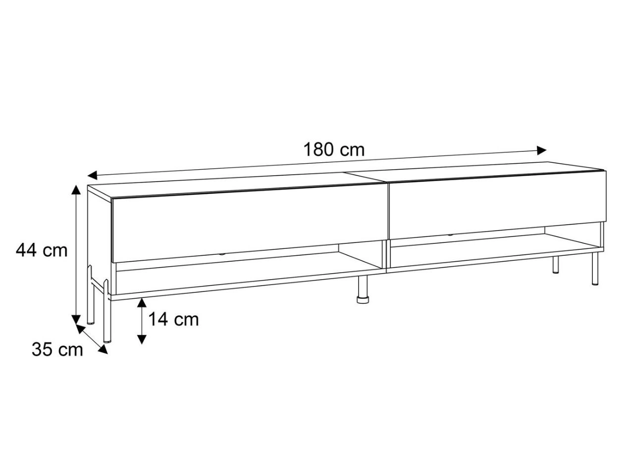 - Szafka RTV składa się z dwóch elementów o szerokości 90 cm każdy, które po zestawieniu tworzą łączną szerokość 180 cm