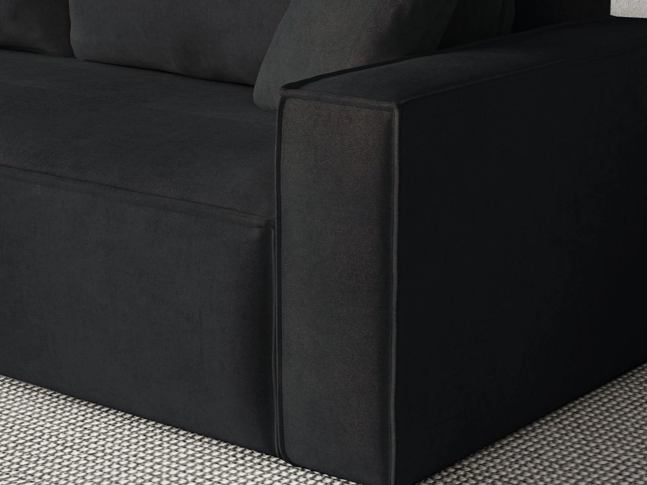 Wysokiej jakości wypełnienie z pianki PUR oraz sprężyn falistych zapewnia odpowiednią sprężystość i komfort podczas codziennego użytkowania. Stabilność sofy gwarantuje solidna konstrukcja oparta na drewnie i płycie wiórowej. Niskie, czarne nóżki nadają bryle lekkości, a tapicerowany tył sprawia, że sofa Sivra prezentuje się estetycznie z każdej strony i może być ustawiona w dowolnym miejscu pomieszczenia.