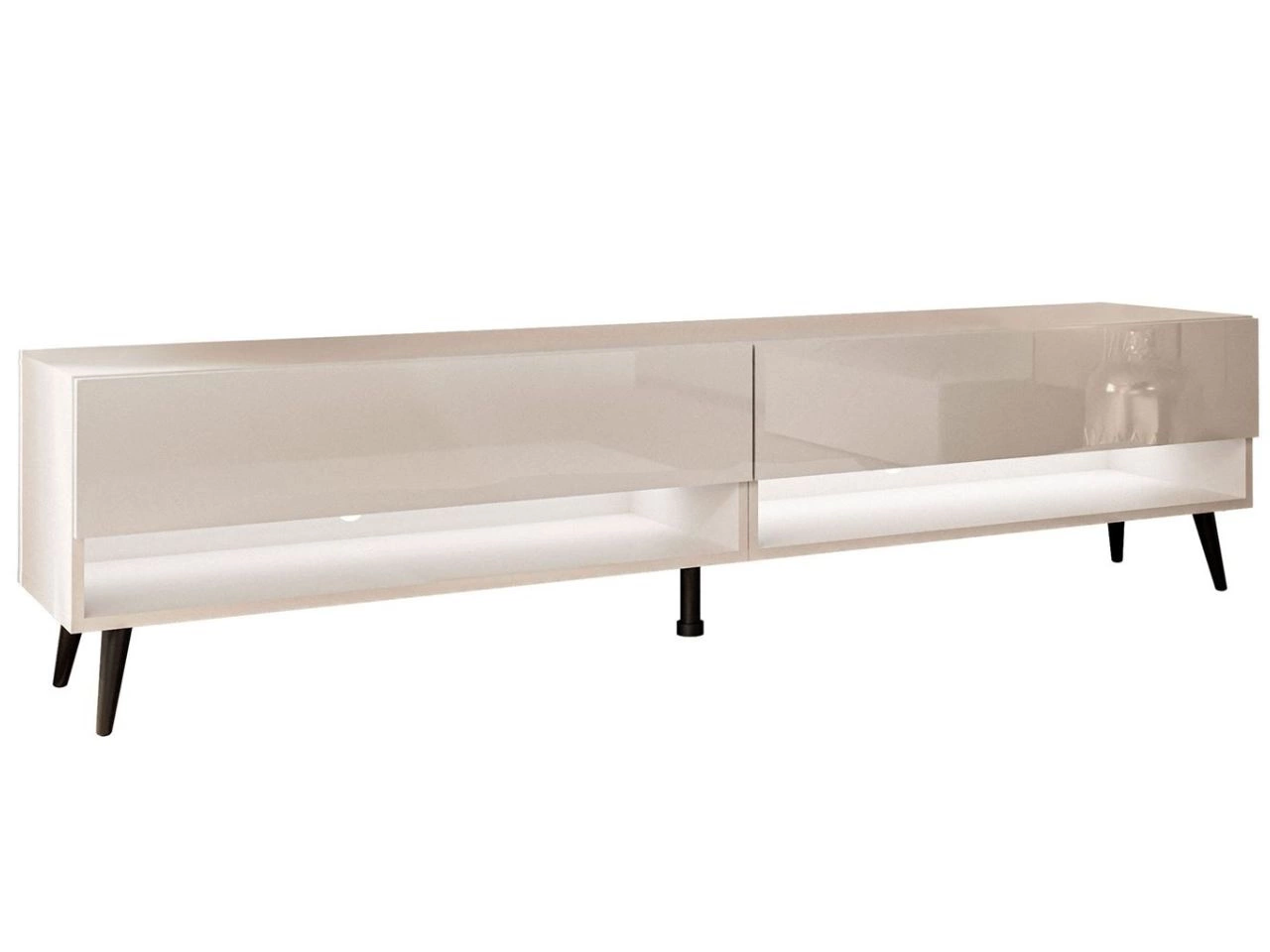 Szafka RTV do salonu 180 cm z czarnymi nóżkami i oświetleniem LED Aurelie Kaszmir połysk