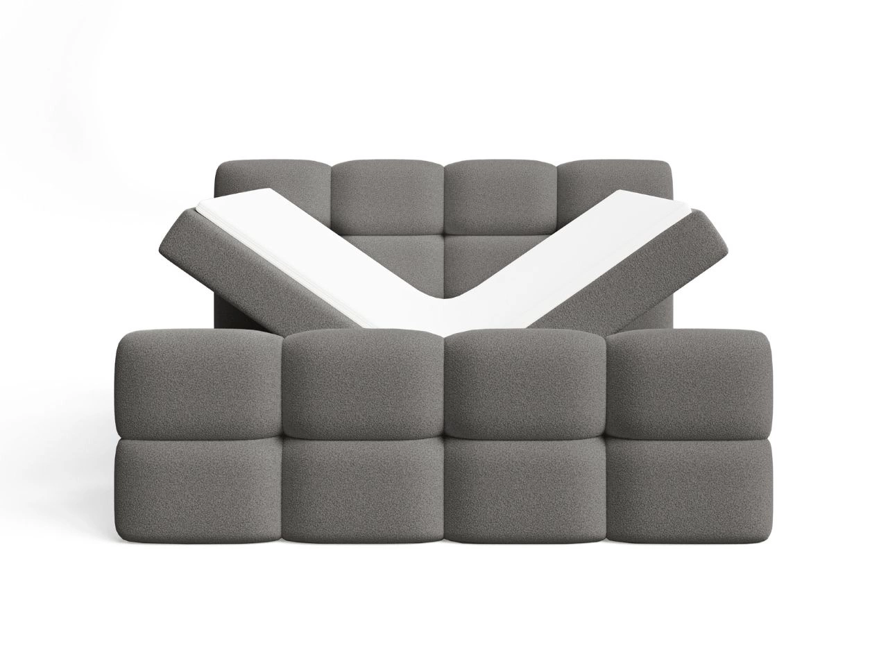 Łóżko Rivon wyposażono w praktyczny, dwudzielny pojemnik na pościel. Mechanizm sprężynowy ułatwia unoszenie stelaża, dzięki czemu dostęp do schowka jest szybki i wygodny. To rozwiązanie sprawia, że łóżko nie tylko podnosi jakość snu, ale także pomaga w utrzymaniu porządku w sypialni.