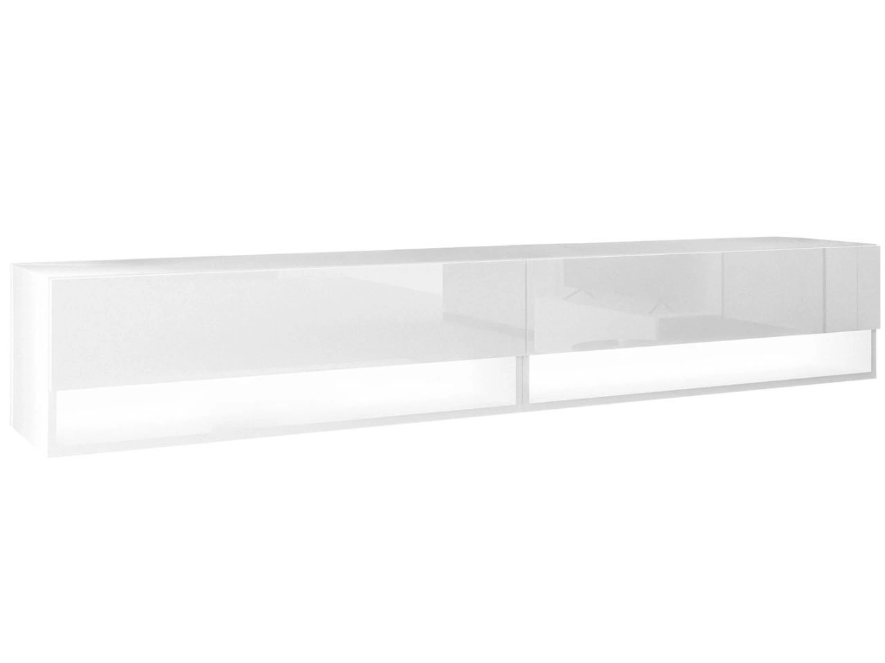 Szafka RTV wisząca 180 cm do salonu z oświetleniem LED Aurelie Biały połysk
