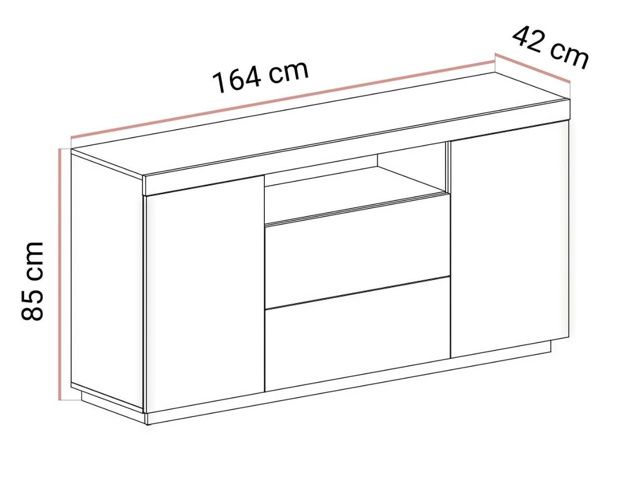 Komoda Asumi wyróżnia się ciekawym połączeniem czarnych frontów z korpusem w odcieniu dębu wotan. Mebel ten wyposażony jest w bardzo szeroki blat, który ma aż 164 cm, dzięki czemu świetnie sprawdzi się w roli komody RTV, na której ustawimy nawet bardzo duży telewizor. Pod blatem znajduje się ponadto praktyczna wnęka, w której możemy umieścić na przykład sprzęt multimedialny. Komoda Asumi oferuje ponadto dwie szafki z uchylnymi drzwiczkami i półkami we wnętrzu, oraz dwie szuflady na prowadnicach kulkowych, z pełnym wysuwem. Zarówno szafki, jak i szuflady wyposażone zostały w bezuchwytowy system otwierania Push To Open - naciśnij, aby otworzyć.