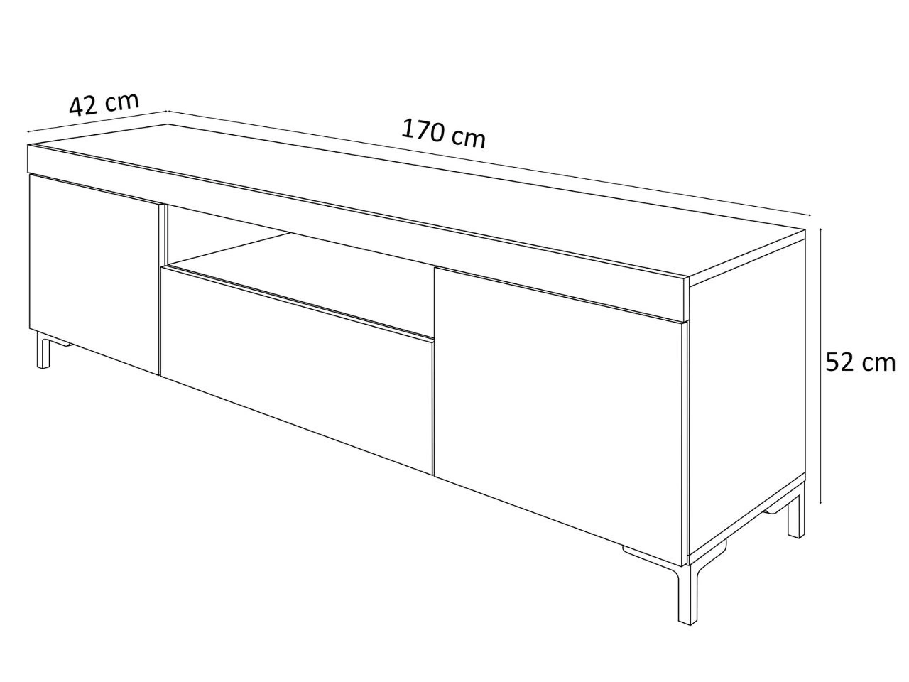 Szafka telewizyjna Asumi prezentuje swym wyglądem bardzo ciekawe połączenie czarnych frontów z korpusem w odcieniu dębu wotan. Jej blat o szerokości 170 cm będzie w stanie pomieścić nawet bardzo dużych rozmiarów telewizor. Pod blatem znajduje się również otwarta wnęka, w której można ustawić sprzęt multimedialny. Szafka RTV Asumi oferuje ponadto dwie uchylne szafki oraz pojemną szufladę poruszającą się na prowadnicach kulkowych i zapewniające pełny wysuw. Zarówno szafki, jak i szuflada posiadają bezuchwytowy system otwierania Push To Open - naciśnij, aby otworzyć.