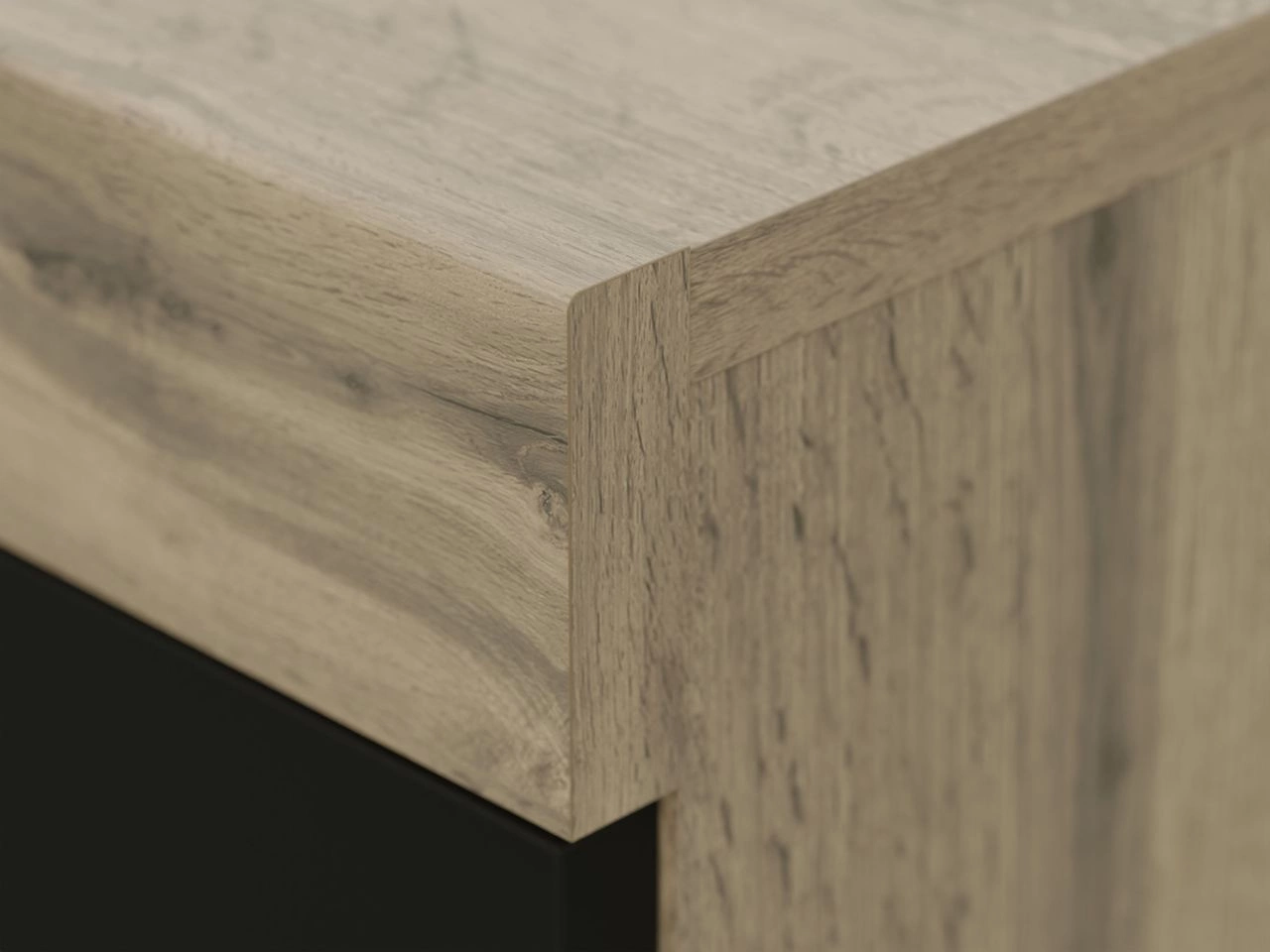 - mebel został zabezpieczony obrzeżem ABS, które nie tylko estetycznie wykańcza powierzchnię, ale też chroni ją przed uszkodzeniami, wilgocią i zwiększa bezpieczeństwo użytkowania