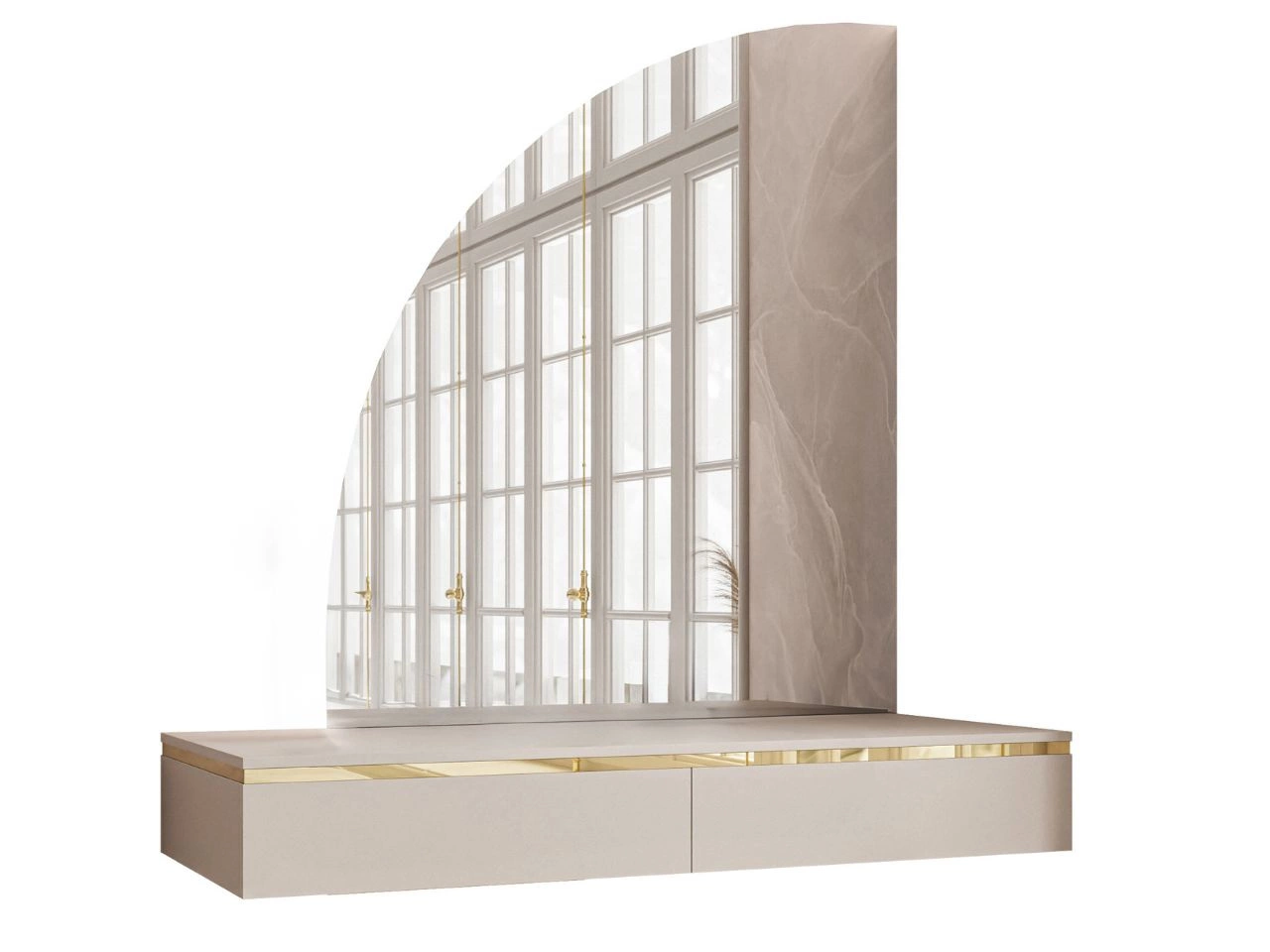 Toaletka wisząca lewostronna z szufladami, lustrem i oświetleniem LED na złotym stelażu Evare Kaszmir