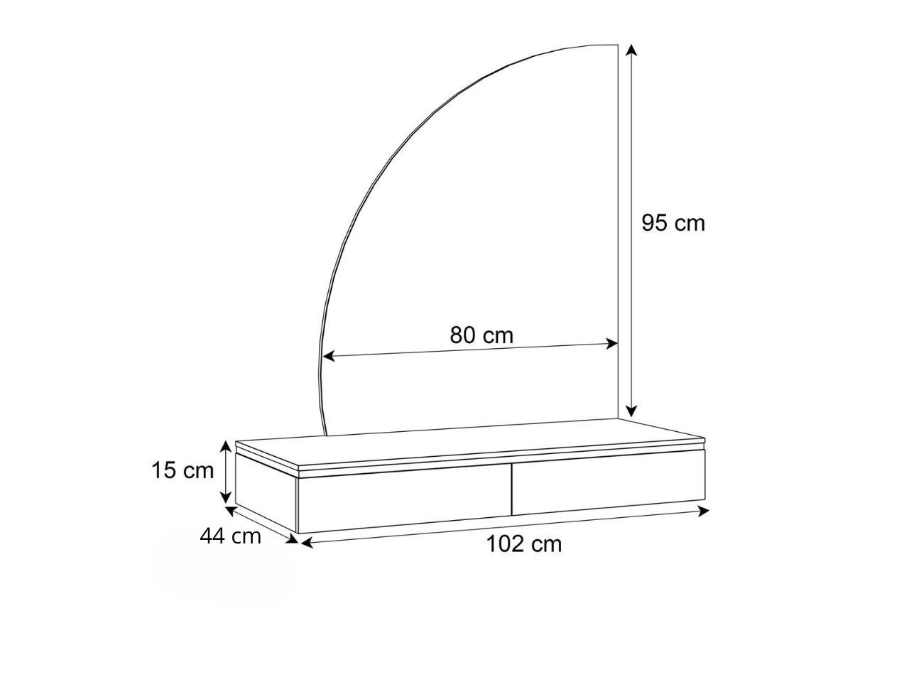 Unikalnym elementem zestawu jest lustro w kształcie półksiężyca wyposażone w oświetlenie LED, które zapewnia jasne i równomierne światło, idealne do makijażu czy pielęgnacji. Wisząca toaletka Evare to połączenie nowoczesnego designu, luksusowych detali i praktycznych rozwiązań – perfekcyjny wybór do stylowych wnętrz.