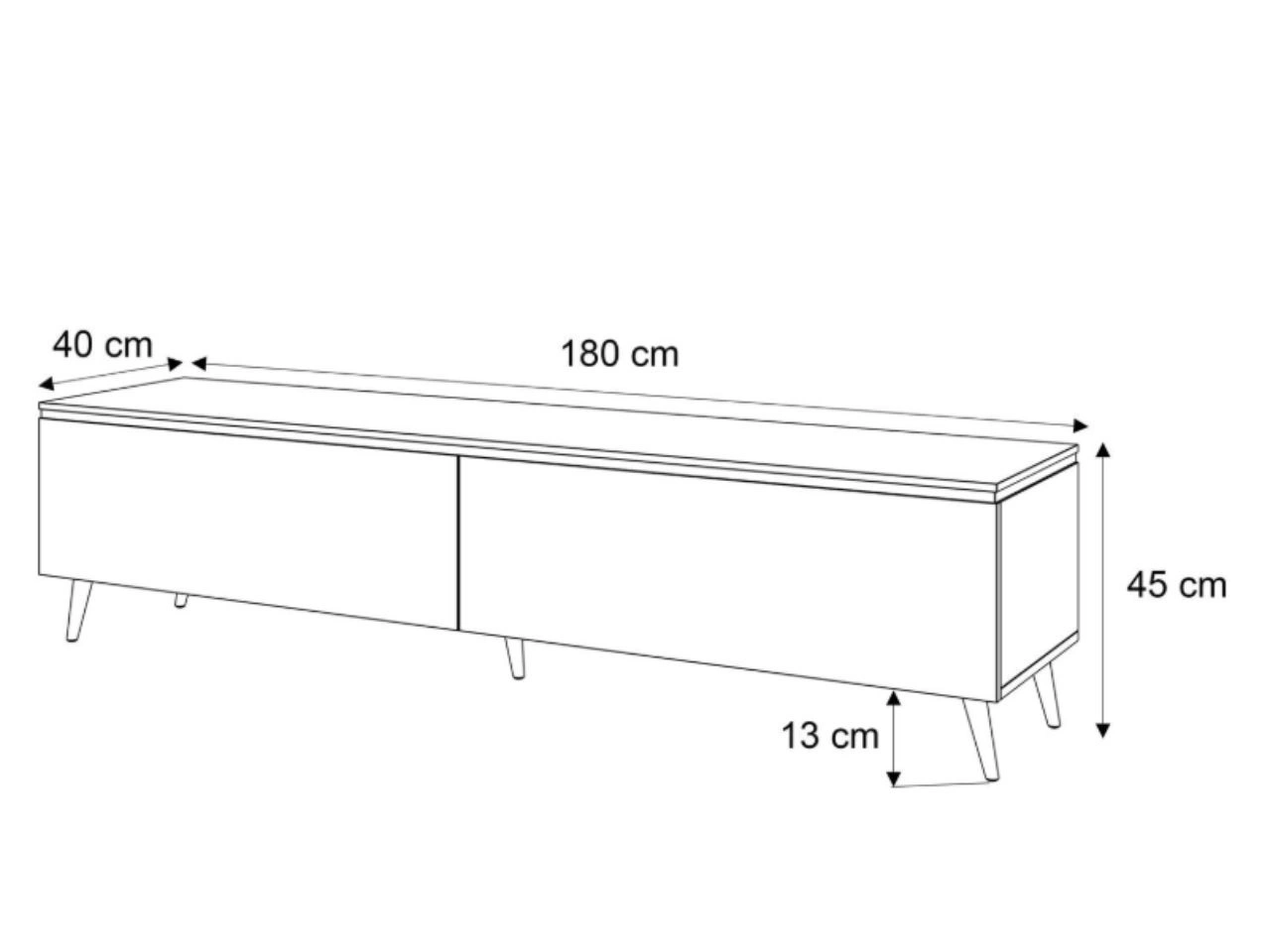 Całość wykonano z trwałej płyty laminowanej, której krawędzie zabezpieczono odpornym obrzeżem ABS. Konstrukcja wspiera się na skośnych, złotych nogach, które nadają jej lekkości, elegancji i nowoczesnego charakteru. Meblościanka Evare to idealny wybór dla osób, które chcą połączyć estetykę z codzienną wygodą.