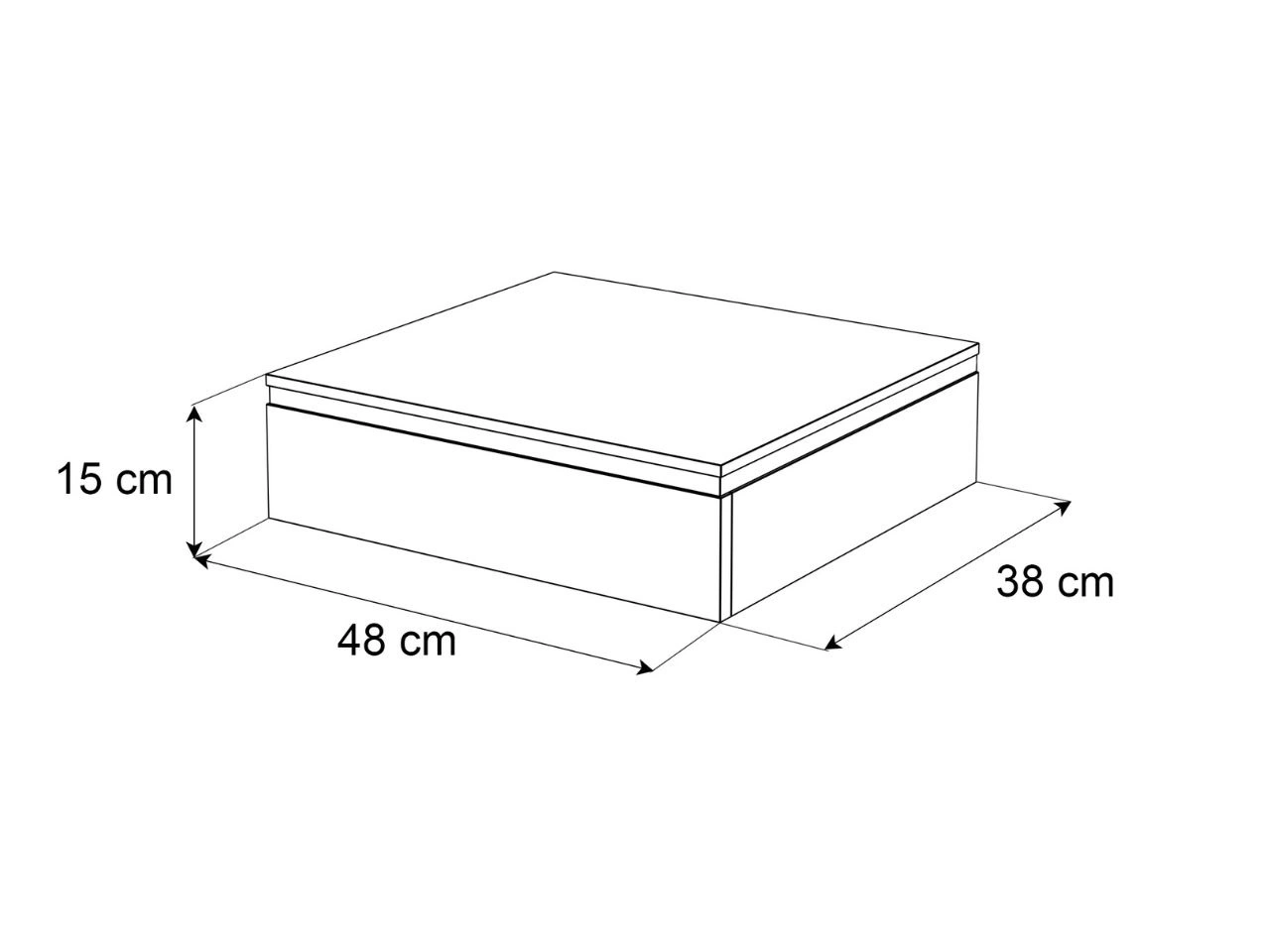 Kompaktowe wymiary stolika sprawiają, że idealnie mieści się obok łóżka, nie zajmując wiele miejsca. Wisząca forma nadaje mu lekkości, a efekt cienkiego blatu, uzyskany dzięki połączeniu płyt, podkreśla jego nowoczesny charakter. To ponadczasowy mebel, który będzie stylowym i funkcjonalnym dodatkiem w Twojej sypialni przez wiele lat.