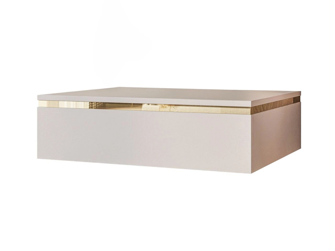 Model został wyposażony w praktyczną szufladę z bezuchwytowym systemem otwierania od spodu, co podkreśla jego minimalistyczny charakter i zapewnia wygodę użytkowania. Solidna konstrukcja wykonana z płyty laminowanej oraz krawędzie zabezpieczone obrzeżem ABS gwarantują trwałość i odporność na codzienne użytkowanie.