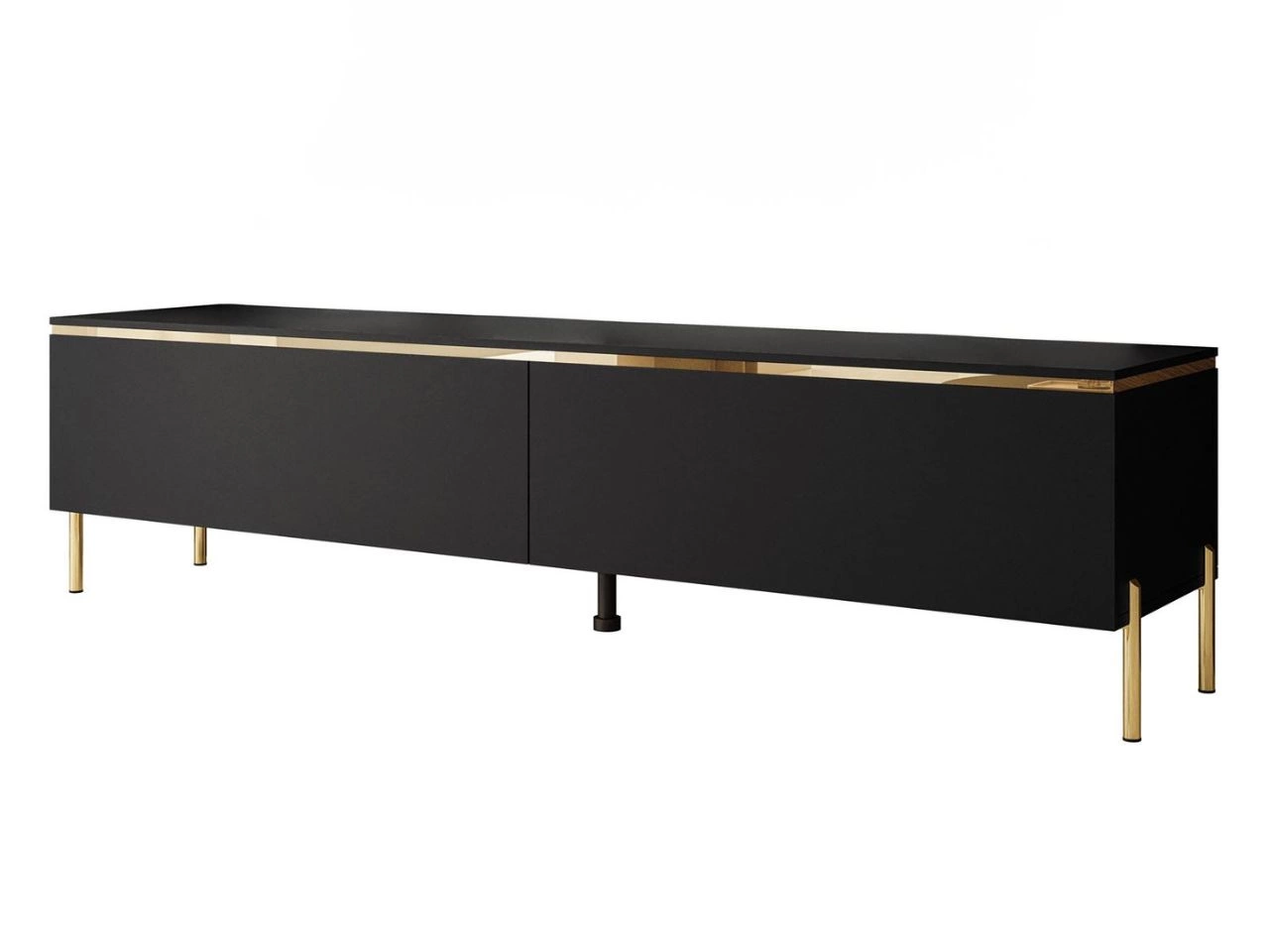 Szafka RTV 180 cm glamour na złotych metalowych nogach i z oświetleniem LED Evare Czarny mat