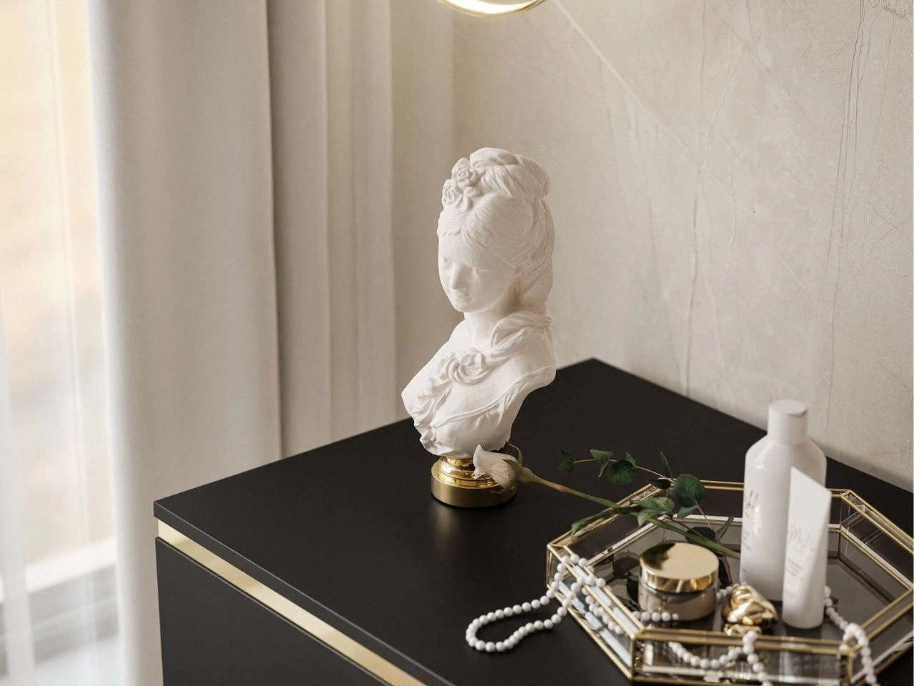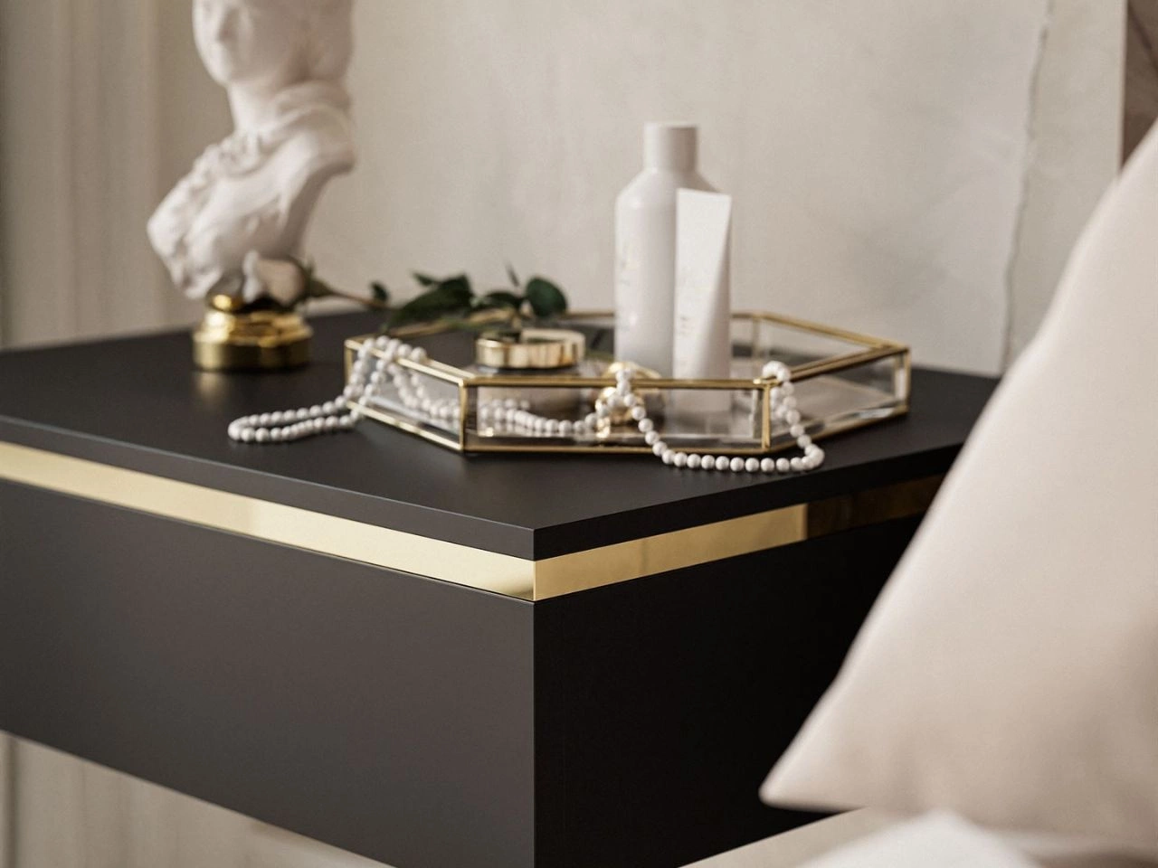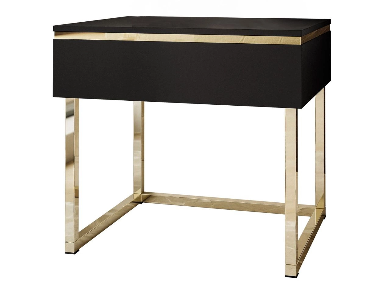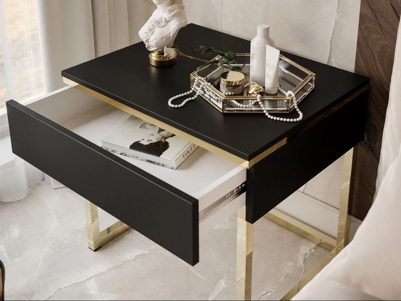 Stolik nocny glamour z szufladą na złotym stelażu Evare Czarny matt