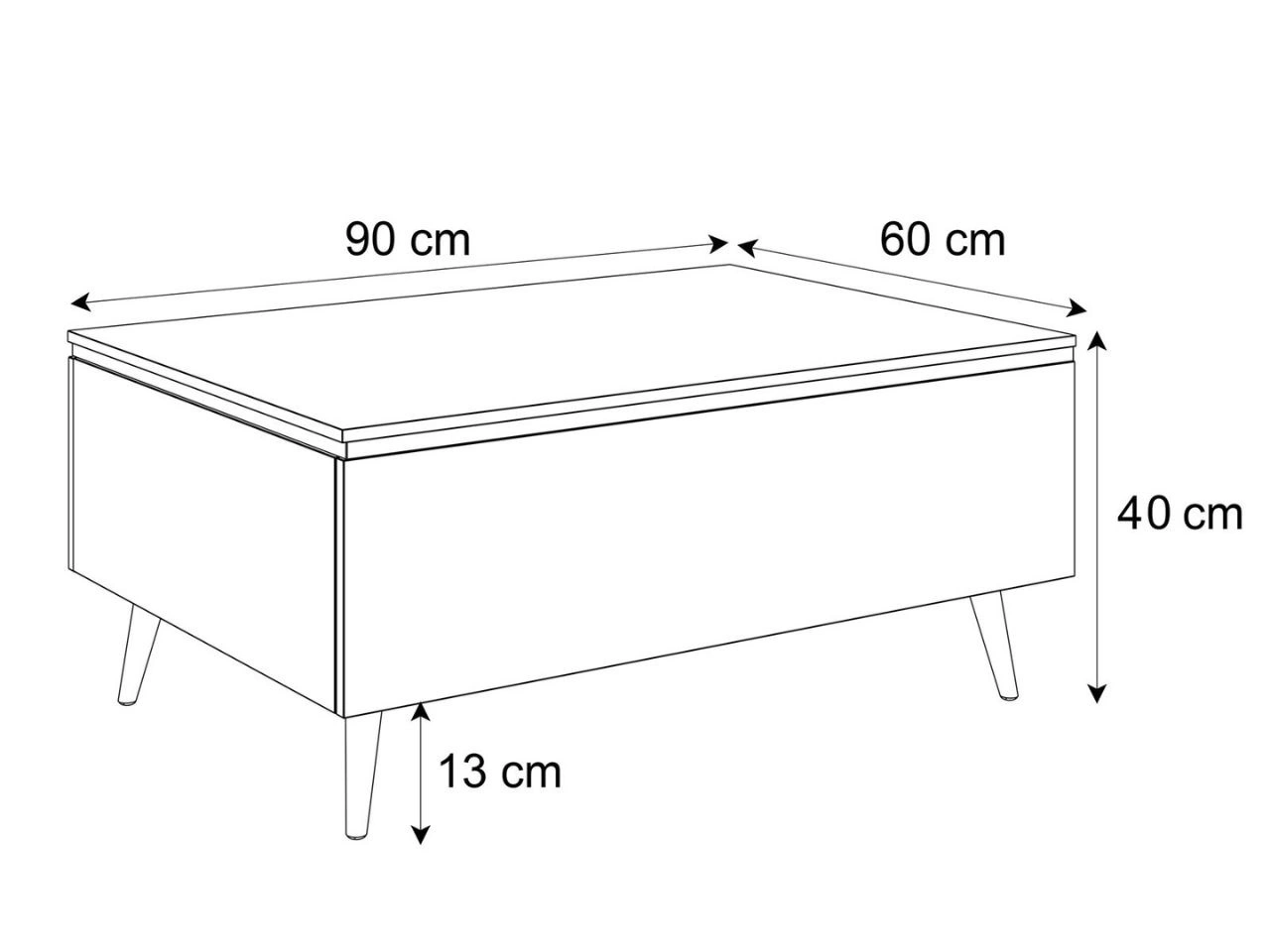 Stolik kawowy Evare uzupełnia zestaw, wprowadzając do wnętrza spójność i elegancję. Wyposażony w praktyczne schowki z frontami otwieranymi w dół oraz wsparty na smukłych nóżkach, stanowi wygodne miejsce na książki, dekoracje czy filiżankę kawy.