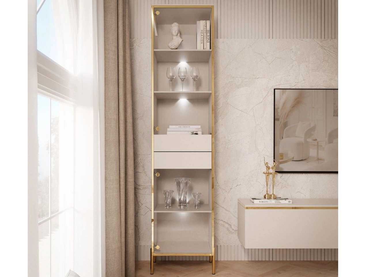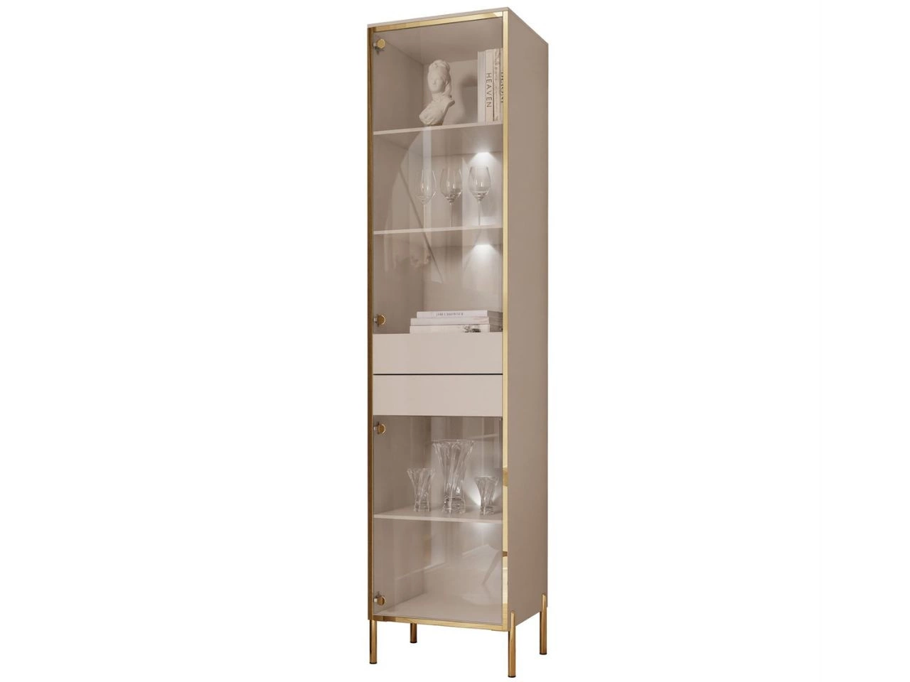 Witryna na złotych nogach szklana w stylu glamour z oświetleniem LED Evare kaszmir