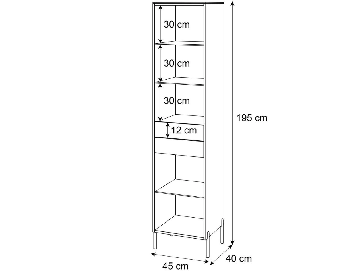 Szklana witryna Evare wykonana została z wysokiej klasy płyty laminowanej, o grubości 16 mm (korpus i fronty szuflad). Trzy półki ukryte za szklanymi drzwiami mają natomiast grubość 10 mm. Dodatkowo obrzeża mebla zabezpieczono okleiną ABS, która chroni przed powstawaniem drobnych uszkodzeń mechanicznych i przenikaniem wilgoci. Niewątpliwym atutem witryny Evare jest wbudowane oświetlenie LED, które zasilane jest z gniazdka sieciowego za pomocą dołączonego do zestawu przewodu. Każda z pięciu wnęk posiada swój własny punkt świetlny.