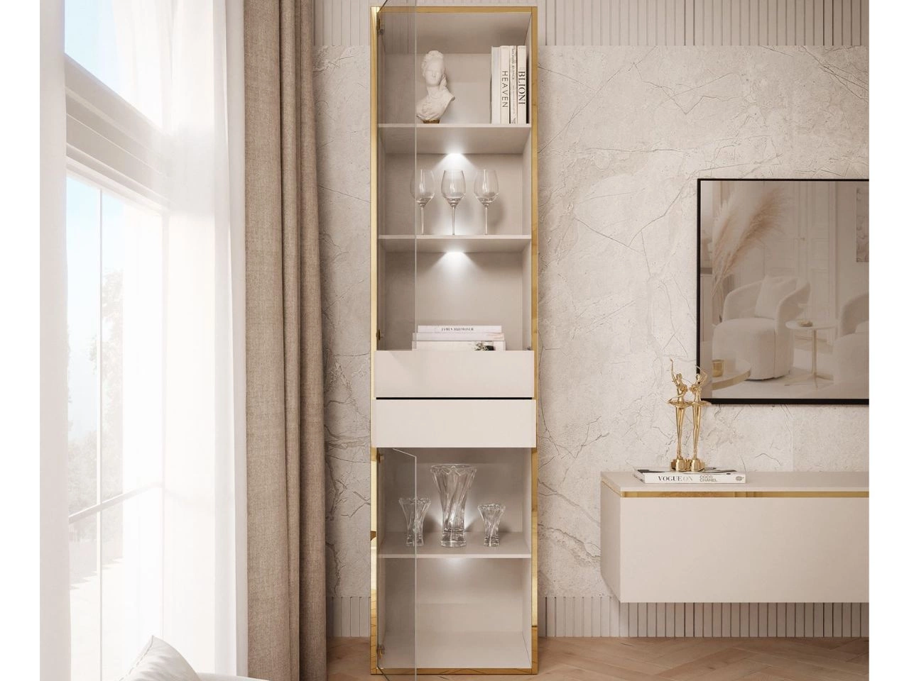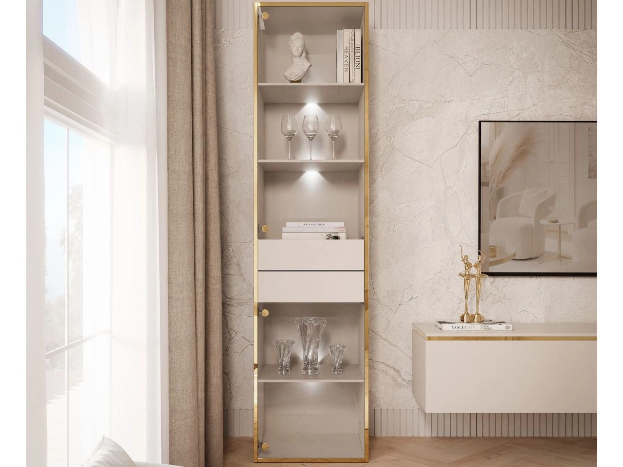 Dobierasz do: Witryna stojąca szklana w stylu glamour z oświetleniem LED Evare kaszmir
