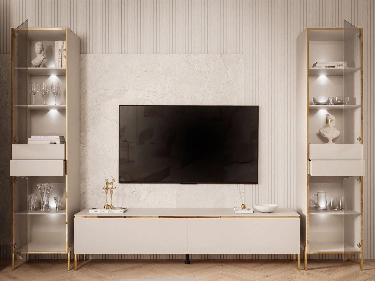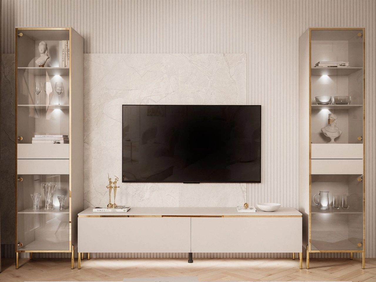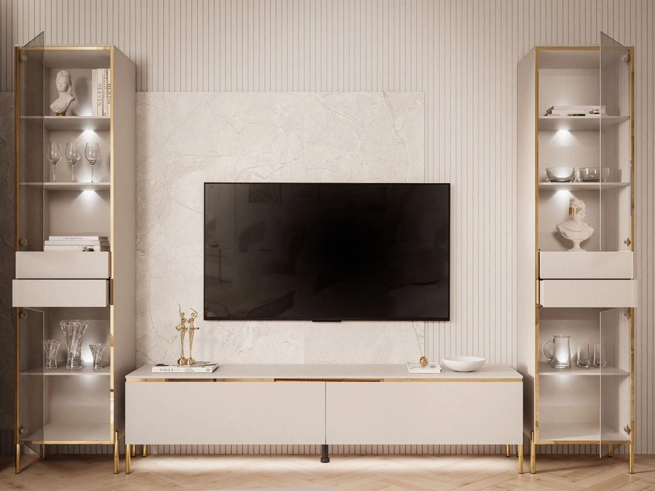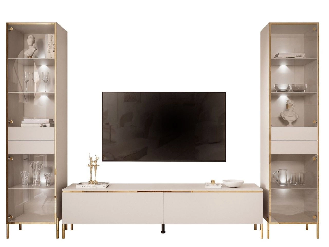 Zestaw mebli do salonu z dwiema witrynami i oświetleniem LED w stylu glamour Evare Kaszmir