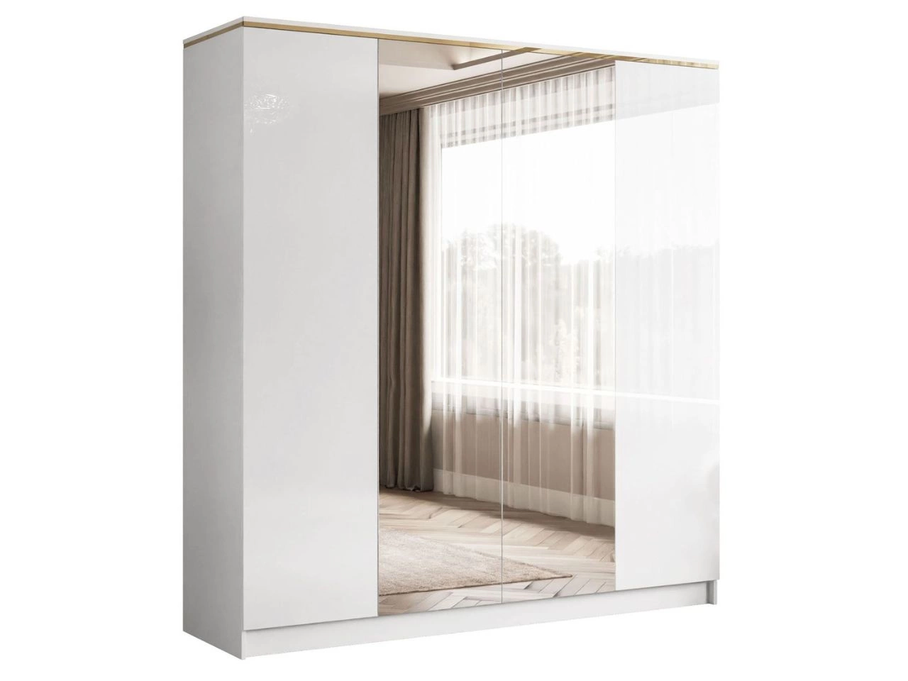 Szafa z lustrem 200 cm, z drzwiami uchylnymi i szufladami Evare Biały Połysk