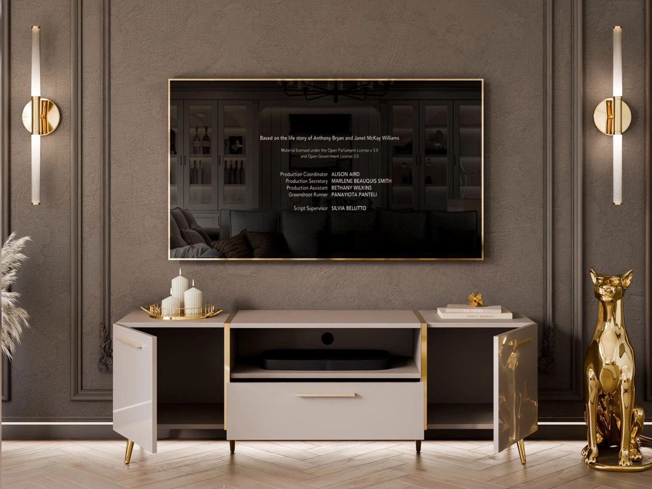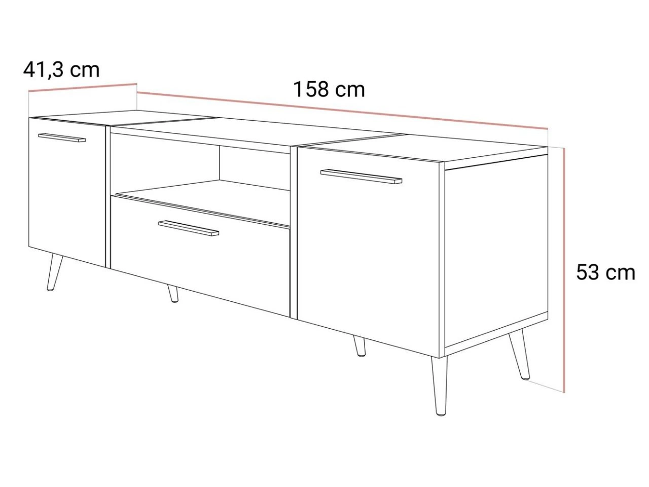 Szafka RTV Lunelie została stworzona z myślą o funkcjonalności w nowoczesnym wydaniu. Dwie szafki boczne, praktyczna szuflada i otwarta półka na sprzęt multimedialny pozwalają na estetyczne zorganizowanie przestrzeni. Model ten łączy elegancki design z praktycznymi rozwiązaniami, które ułatwiają codzienne korzystanie z salonu.