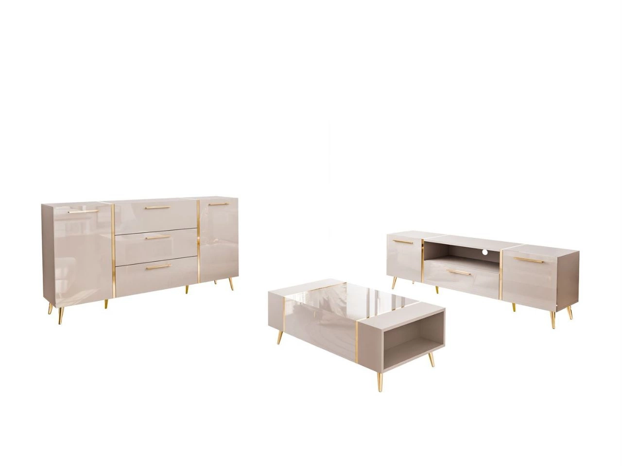 Zestaw mebli do salonu w stylu glamour na złotych nóżkach Lunelie Kaszmir