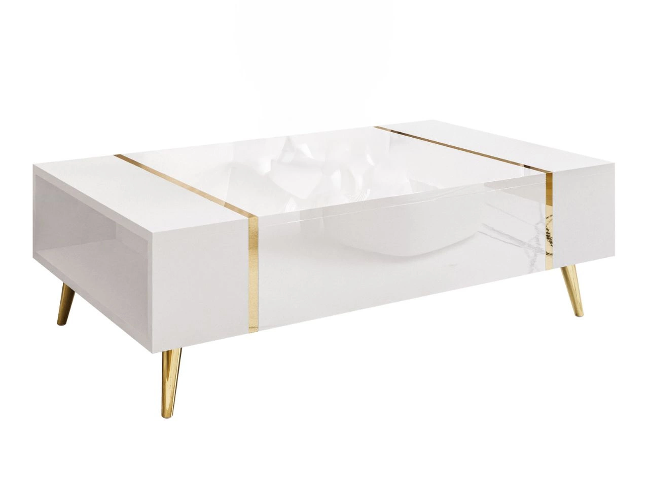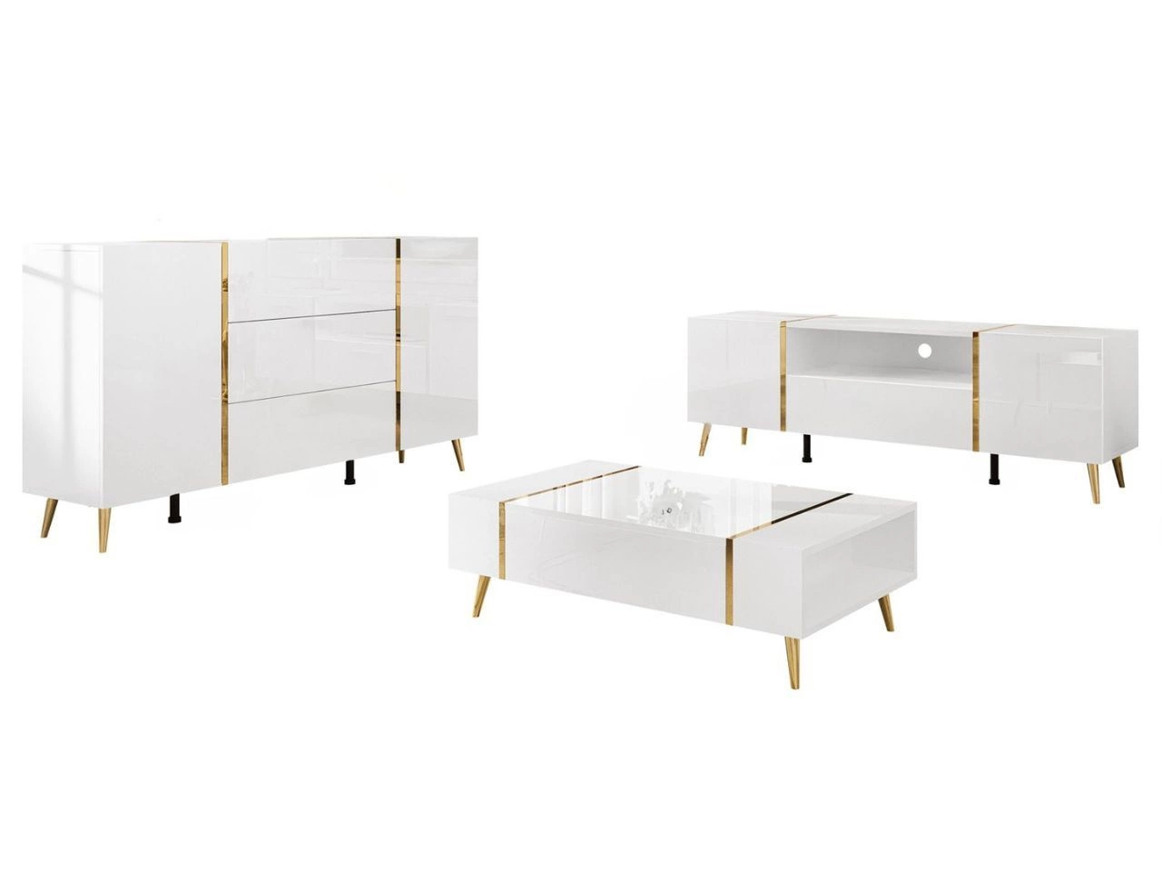 Zestaw mebli do salonu na złotych metalowych nóżkach w stylu glamour Lunelie Biały połysk
