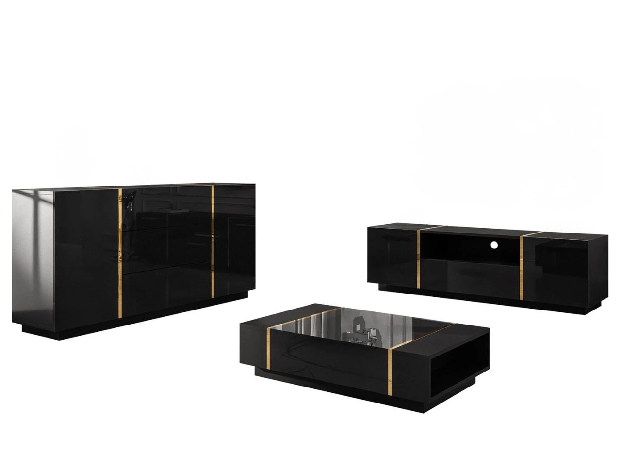 Zestaw mebli do salonu w stylu glamour Lunelie Czarny połysk