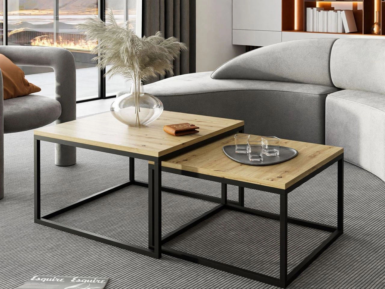 Szukasz sposobu, aby urządzić swój salon elegancko, a zarazem funkcjonalnie? Zestaw stolików kawowych Asumi 2w1 to doskonała propozycja dla osób ceniących prostotę formy i industrialny charakter wnętrz. Dwa stoliki o różnej wysokości tworzą zgrany duet, który można ustawić razem lub osobno – w zależności od potrzeb oraz dostępnej przestrzeni.