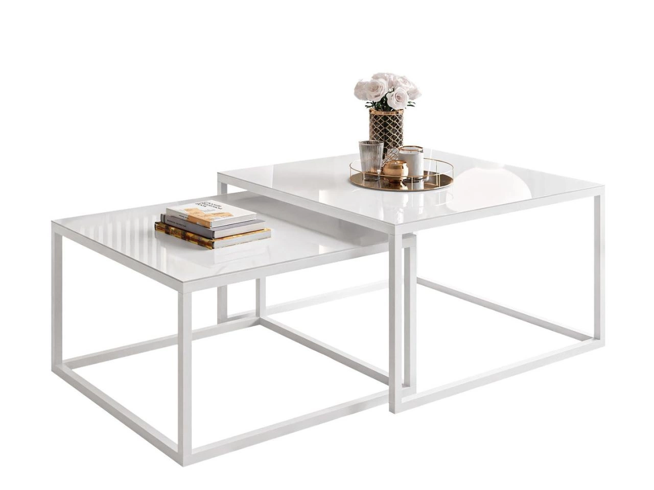Różne wymiary stolików pozwalają łatwo wsunąć mniejszy pod większy, co czyni zestaw nie tylko efektownym, ale też wyjątkowo praktycznym. To doskonałe rozwiązanie zarówno do przestronnych salonów, jak i mniejszych wnętrz, w których liczy się funkcjonalność, estetyka i dbałość o każdy szczegół.