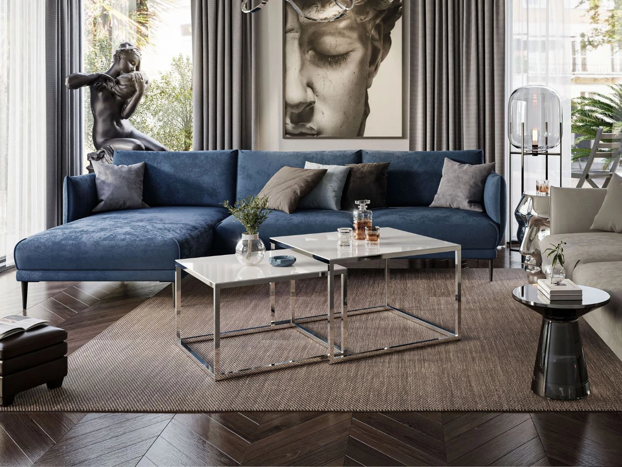 Różne wymiary stolików pozwalają łatwo wsunąć mniejszy pod większy, co czyni zestaw nie tylko efektownym, ale też wyjątkowo praktycznym. To doskonałe rozwiązanie zarówno do przestronnych salonów, jak i mniejszych wnętrz, w których liczy się funkcjonalność, estetyka i dbałość o każdy szczegół.