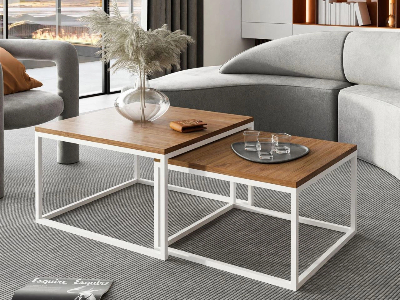 Chcesz, aby Twój salon łączył elegancję z praktycznym wykorzystaniem przestrzeni? Zestaw stolików kawowych Asumi 2w1 to idealne rozwiązanie dla fanów nowoczesnego minimalizmu. Dwa stoliki o różnych wysokościach tworzą harmonijną parę, którą możesz ustawić razem lub rozdzielić w zależności od potrzeb i wielkości pomieszczenia.