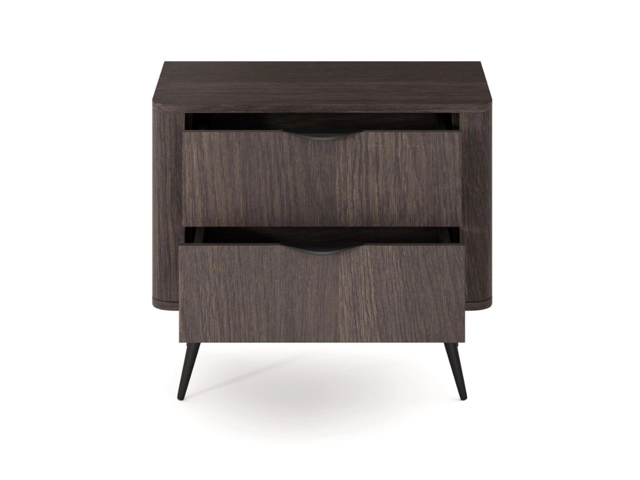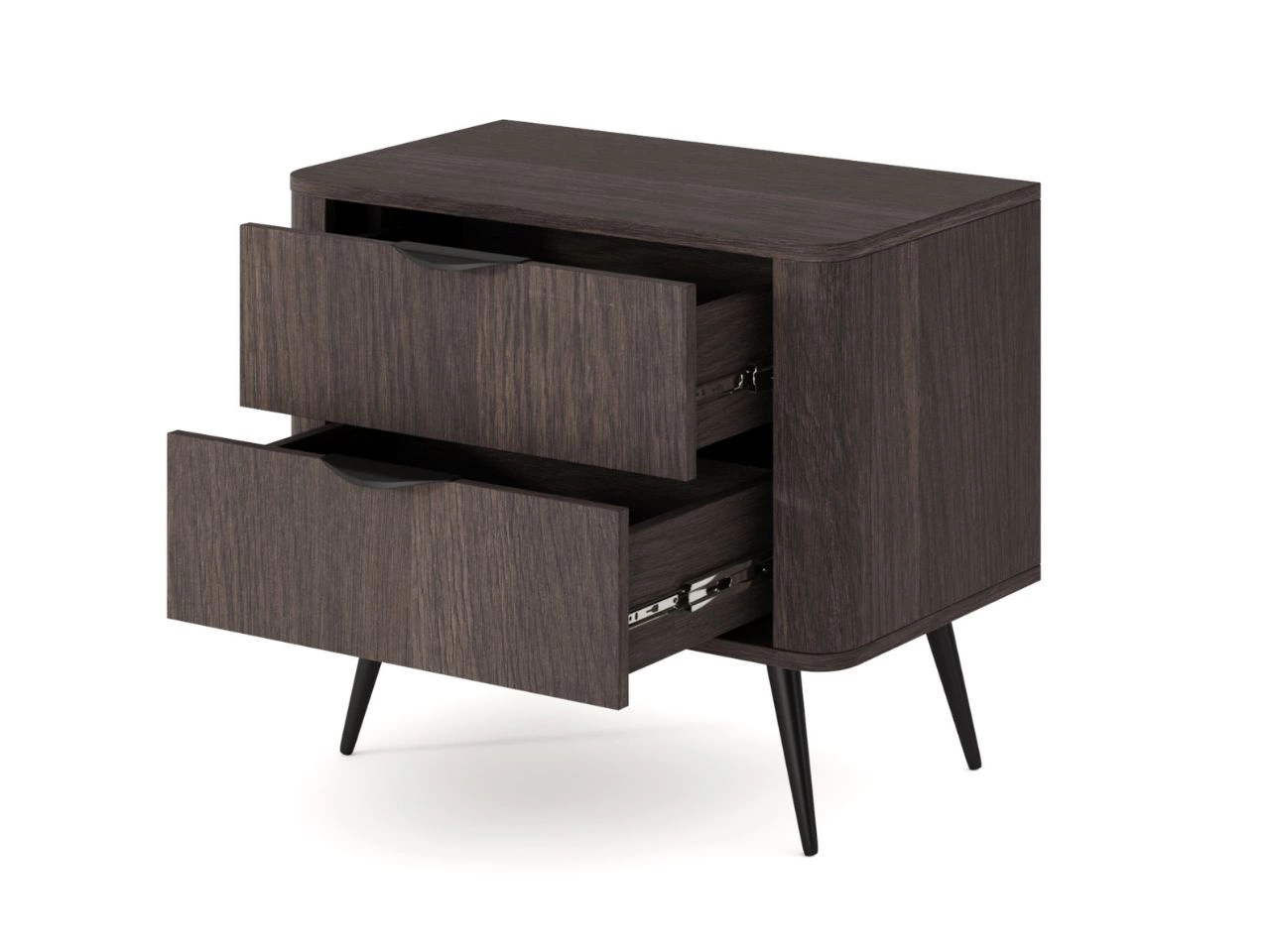Szafkę nocną wyposażono w dwie pojemne szuflady, które zapewniają wygodne miejsce na przechowywanie najpotrzebniejszych drobiazgów, dokumentów czy tekstyliów. Szuflady osadzone są na prowadnicach kulkowych z pełnym wysuwem, co gwarantuje ich płynne działanie, stabilność i komfort użytkowania.