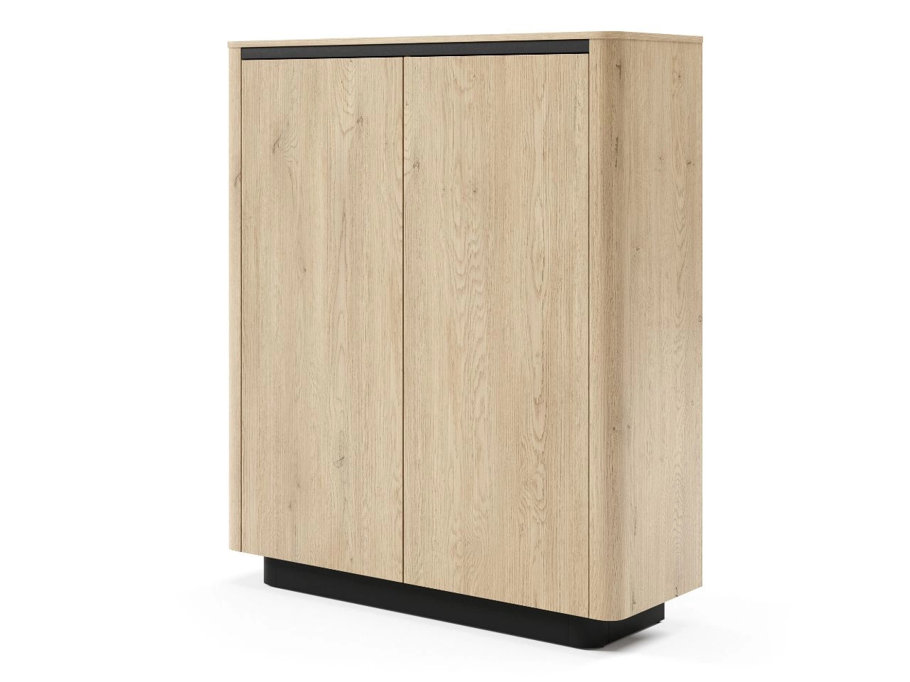 Zestaw mebli salonowych Fascino łączy nowoczesny design, funkcjonalność i eleganckie wykończenie. Komplet składa się z komody wysokiej dwudrzwiowej, szafki RTV oraz komody szerokiej trzydrzwiowej, utrzymanych w dekorze dąb Cremona z czarnymi, matowymi akcentami, które nadają całości lekko industrialnego charakteru.