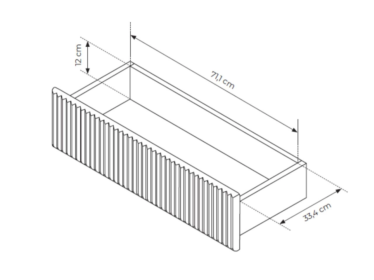 Komoda szeroka łączy pojemne szuflady i zamykane przestrzenie, dzięki czemu świetnie sprawdza się do organizacji codziennych akcesoriów. Jej szeroka forma i ryflowane fronty podkreślają styl całej kolekcji.