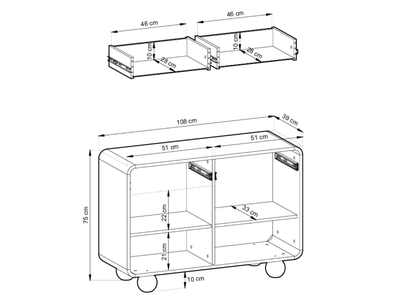 - 2 szuflady z pełnym wysuwem