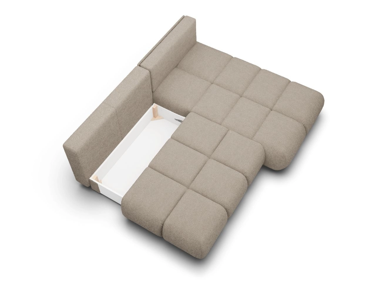 Mebel wyposażono w funkcję spania typu DL, dzięki czemu w szybki sposób można zamienić go w wygodne miejsce do nocnego wypoczynku. W konstrukcji znajduje się również pojemny schowek na pościel, który ułatwia przechowywanie koców i poduszek.