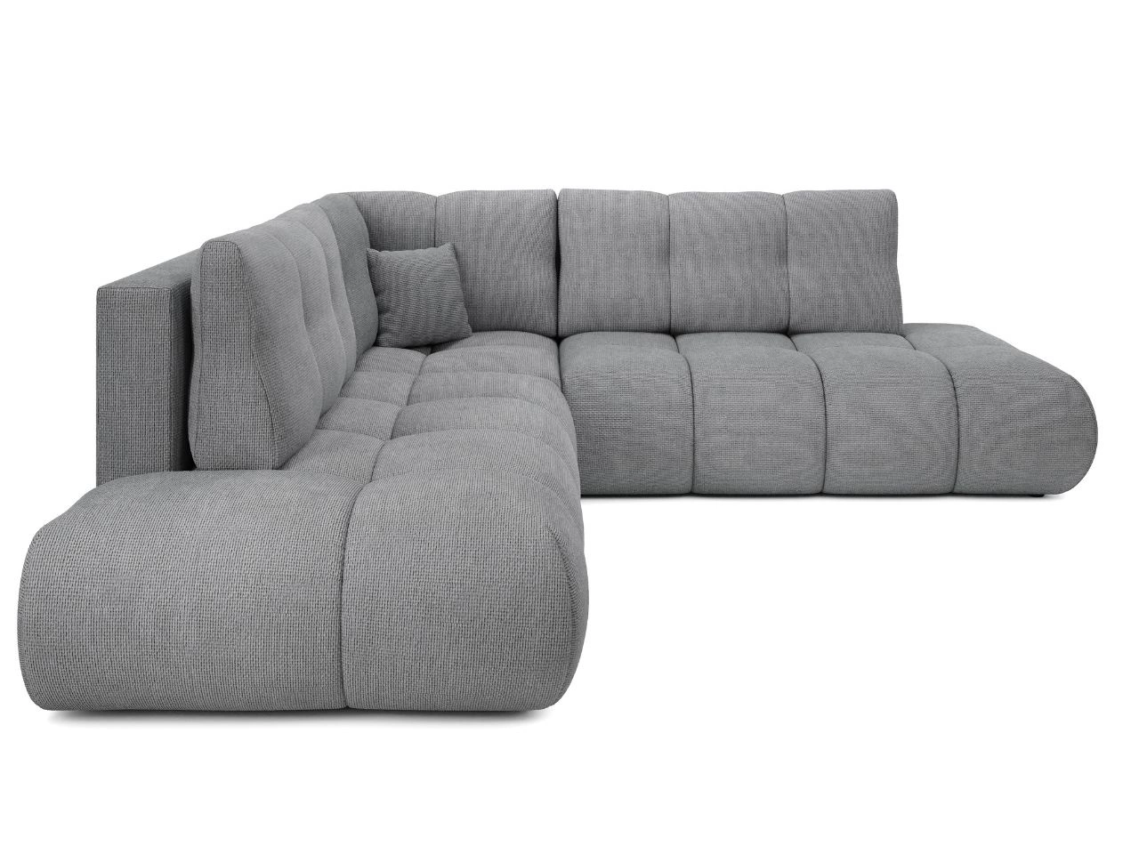 Siedzisko oparte na miękkim wypełnieniu zapewnia odpowiednią sprężystość i wysoki komfort nawet przy intensywnym użytkowaniu. Wysokie, profilowane oparcia oraz luźna poduszka dekoracyjna gwarantują wygodne podparcie pleców, sprzyjając długiemu wypoczynkowi. Kształt narożnika tworzy przestronną strefę relaksu, idealną do wspólnego spędzania czasu, oglądania filmów czy popołudniowego odpoczynku.