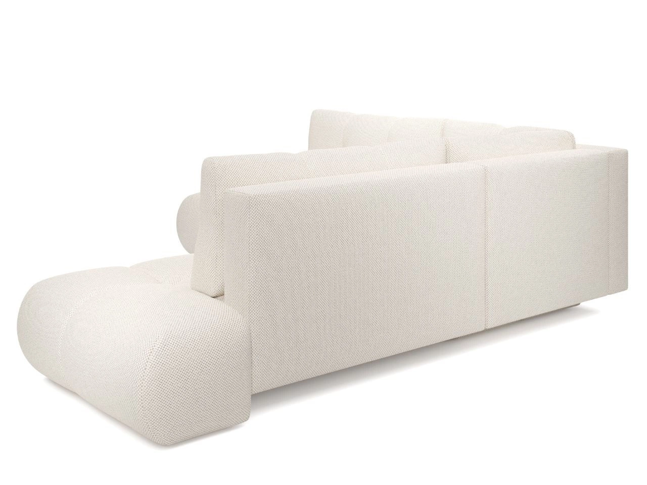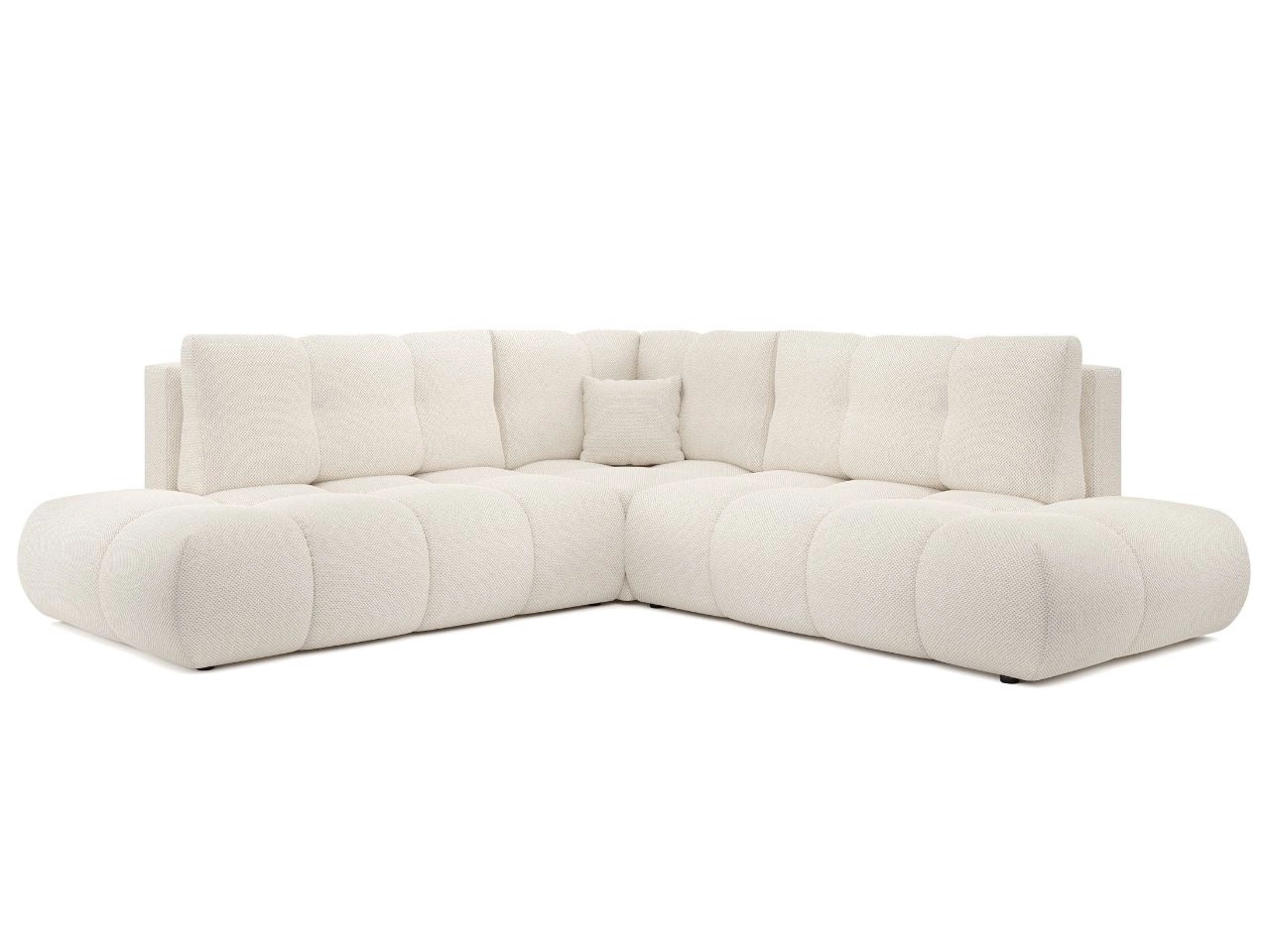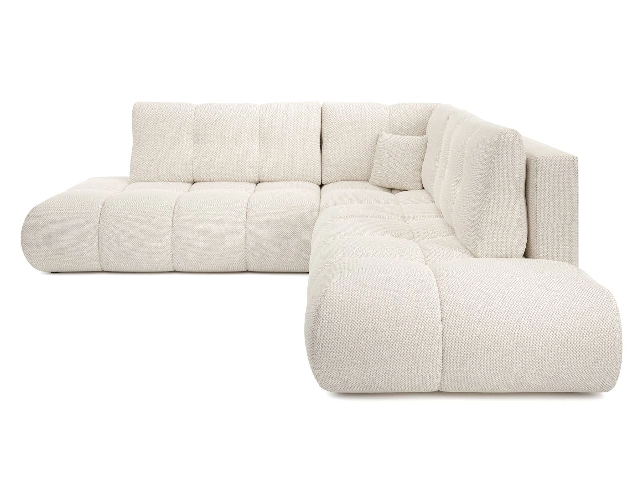 Siedzisko oparte na miękkim wypełnieniu zapewnia odpowiednią sprężystość i wysoki komfort nawet przy intensywnym użytkowaniu. Wysokie, profilowane oparcia oraz luźna poduszka dekoracyjna gwarantują wygodne podparcie pleców, sprzyjając długiemu wypoczynkowi. Kształt narożnika tworzy przestronną strefę relaksu, idealną do wspólnego spędzania czasu, oglądania filmów czy popołudniowego odpoczynku.