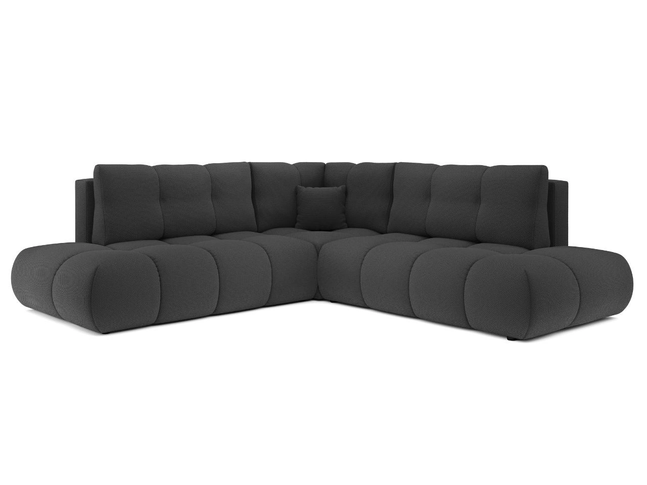 Siedzisko oparte na miękkim wypełnieniu zapewnia odpowiednią sprężystość i wysoki komfort nawet przy intensywnym użytkowaniu. Wysokie, profilowane oparcia oraz luźna poduszka dekoracyjna gwarantują wygodne podparcie pleców, sprzyjając długiemu wypoczynkowi. Kształt narożnika tworzy przestronną strefę relaksu, idealną do wspólnego spędzania czasu, oglądania filmów czy popołudniowego odpoczynku.