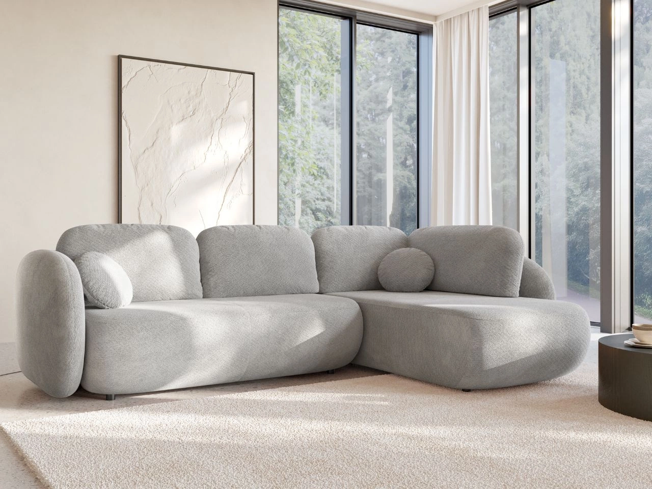 Narożnik Carino to nowoczesny i wyjątkowo komfortowy narożnik tapicerowany, zaprojektowany z myślą o codziennym relaksie i przytulnej atmosferze w salonie. Jego miękka, harmonijnie zaokrąglona forma oraz szerokie, głębokie siedziska tworzą otulającą przestrzeń wypoczynkową, która zachęca do odprężenia. Subtelna, jednolita tapicerka podkreśla łagodny kształt mebla i nadaje mu ponadczasowy charakter, idealnie wpisując się w jasne, minimalistyczne i współczesne aranżacje.