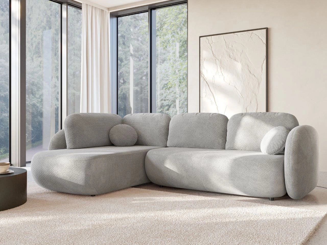 Narożnik Carino to nowoczesny i wyjątkowo komfortowy narożnik tapicerowany, zaprojektowany z myślą o codziennym relaksie i przytulnej atmosferze w salonie. Jego miękka, harmonijnie zaokrąglona forma oraz szerokie, głębokie siedziska tworzą otulającą przestrzeń wypoczynkową, która zachęca do odprężenia. Subtelna, jednolita tapicerka podkreśla łagodny kształt mebla i nadaje mu ponadczasowy charakter, idealnie wpisując się w jasne, minimalistyczne i współczesne aranżacje.