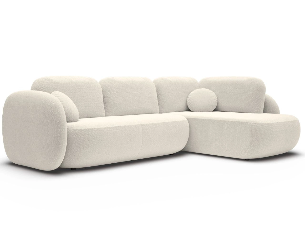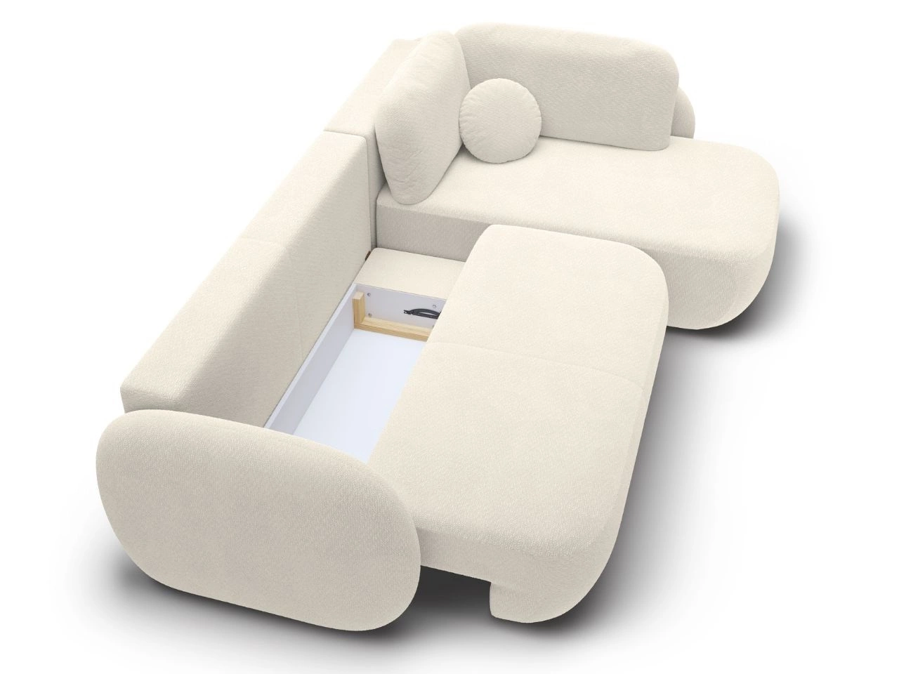 Narożnik z funkcją spania i pojemnikiem Prawy Carino Kremowy
