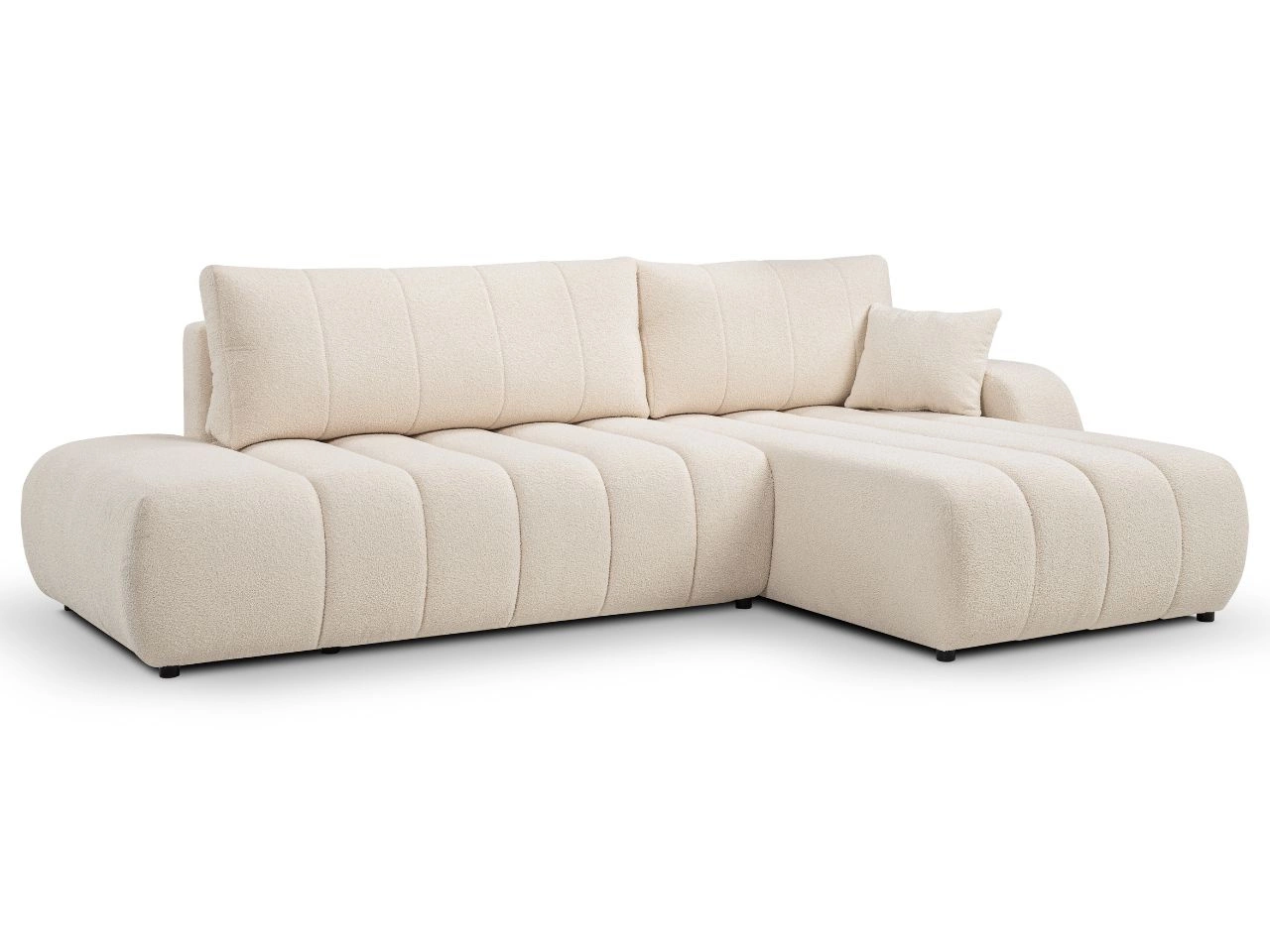 Narożnik z pojemnikiem i funkcją spania Prawy Adoro Jasnobeżowy