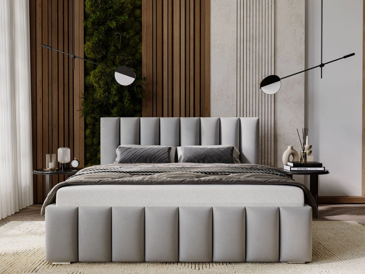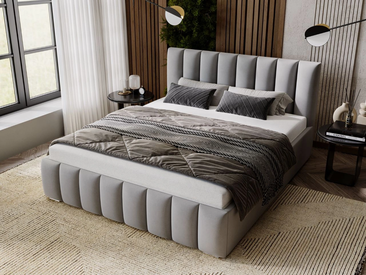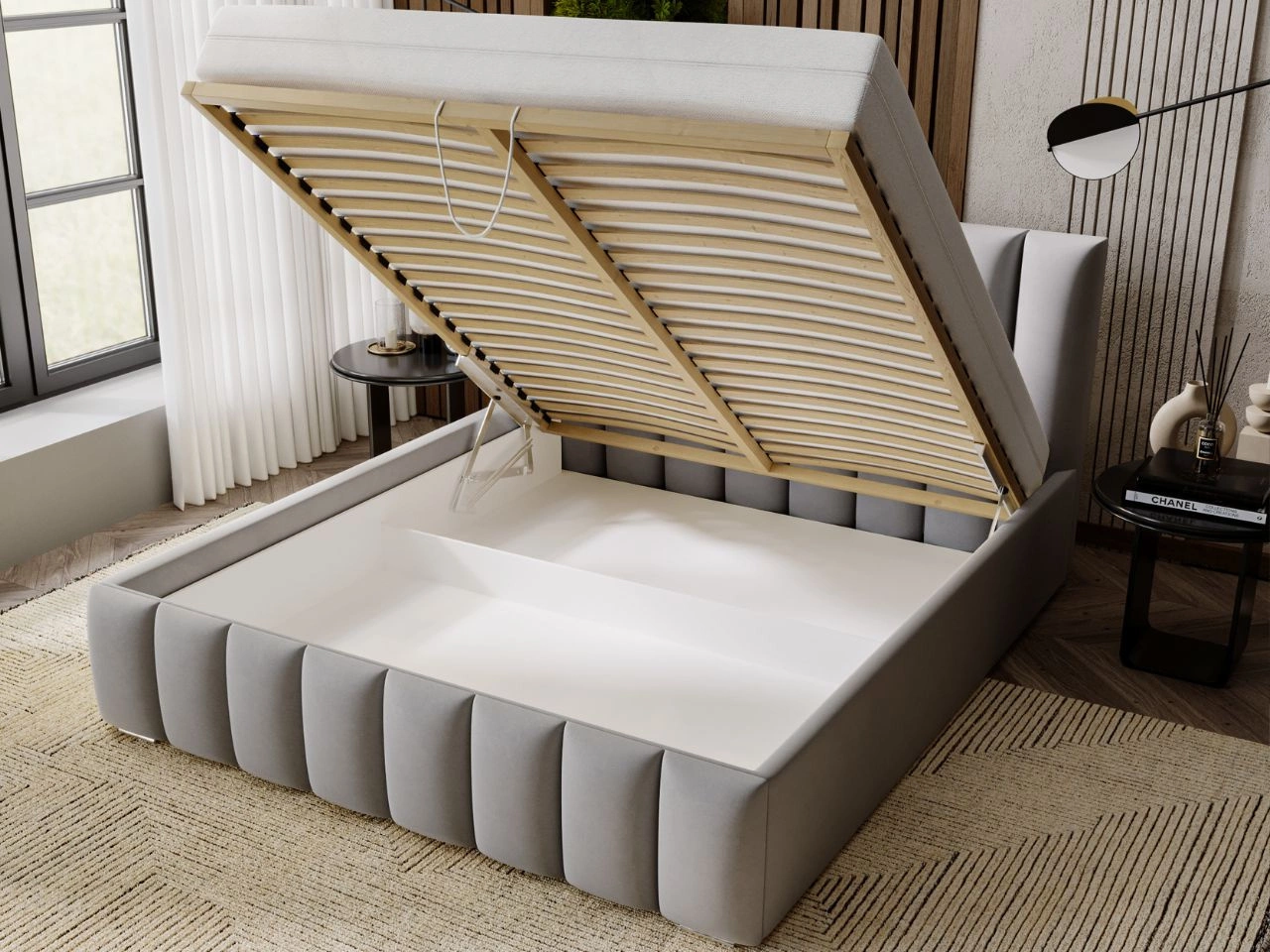 Łóżko tapicerowane z pojemnikiem i stelażem 180x200 Neos Szare