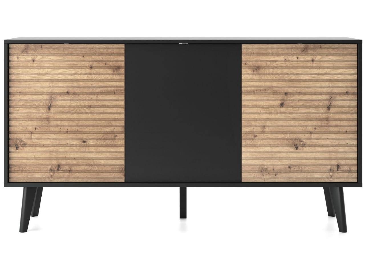 Komoda z drzwiami Astro posiada trzy niezwykle przestronne szafki, która kryją sześć pojemnych półek. Szafka zamykana jest skrzydłem drzwiowym z pięknym ryflowaniem w odcieniu dębu artisan.