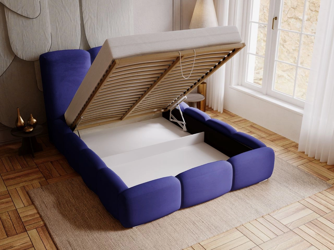 Łóżko tapicerowane z pojemnikiem i stelażem 140x200 cm Bubble Ciemnoniebieskie
