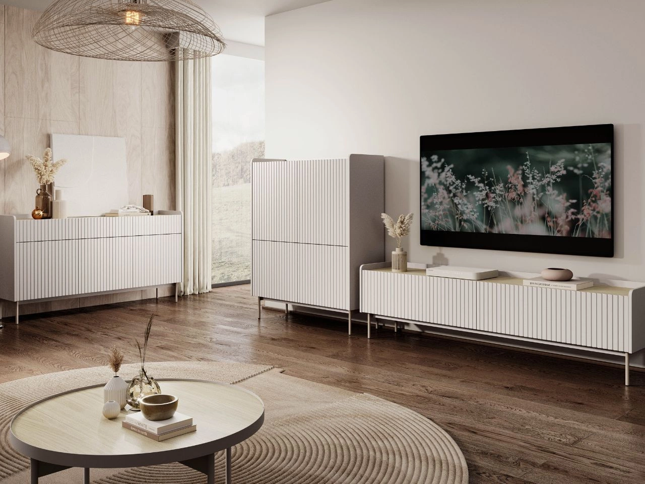 Szafka Abios to wyjątkowe połączenie funkcjonalności i estetyki, które odmieni Twoje wnętrze i nada mu unikalny charakter. Jej elegancki design łączy nowoczesność z subtelną elegancją, czyniąc ją centralnym punktem salonu.