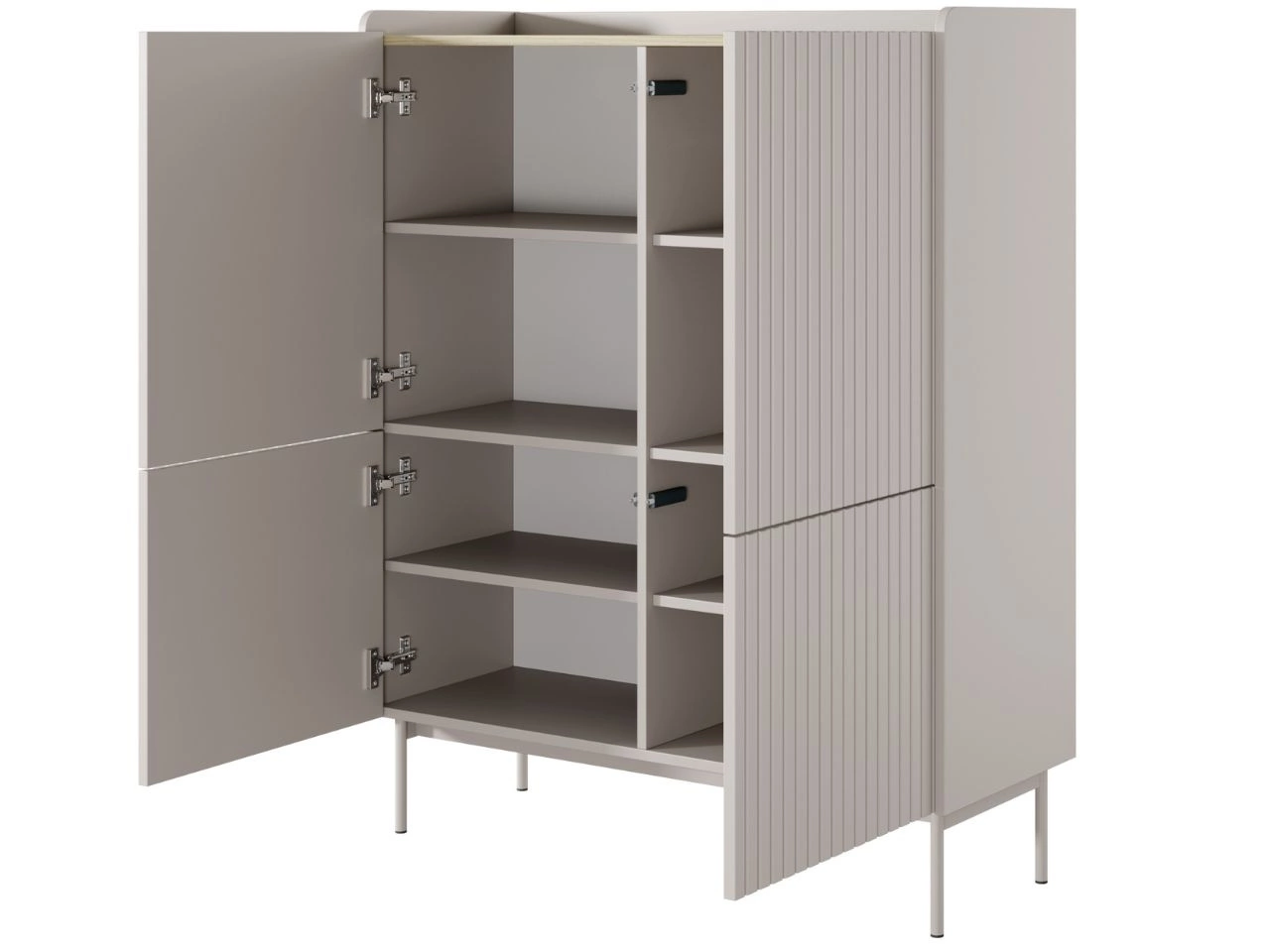 Szafka Abios posiada cztery fronty otwierane na dotyk. Wewnątrz kryje liczne półki, które pozwalają na perfekcyjną organizację przestrzeni. Dzięki innowacyjnemu systemowi Push-to-Open dostęp do nich jest niezwykle prosty i intuicyjny.