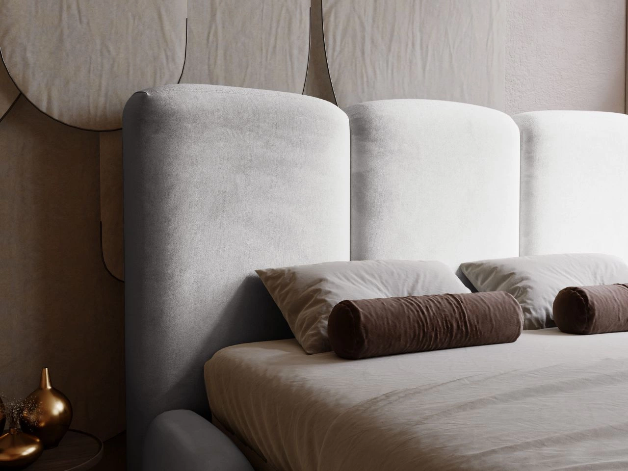 • Wezgłowie ozdobione eleganckimi, tapicerowanymi guzikami